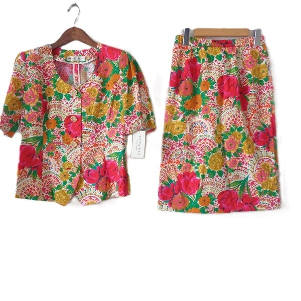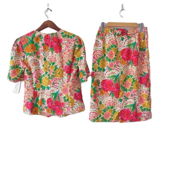 実寸サイズ | (トップス)肩幅約 39cm・袖丈約 28cm・着丈約 54cm・胸囲約 46cm×2 (スカート)ウェスト約 33cm×2・スカート丈約 64cm(スリット丈約 18cm) |