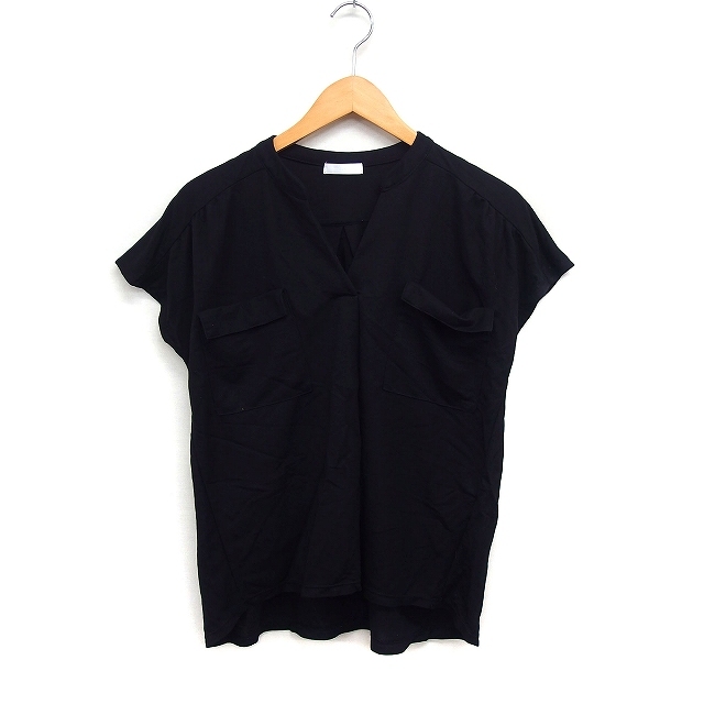 ドレスキップ DRESKIP フレンチスリーブ カットソー Tシャツ オープンネック 無地 M ブラック 黒 /FT33 レディース