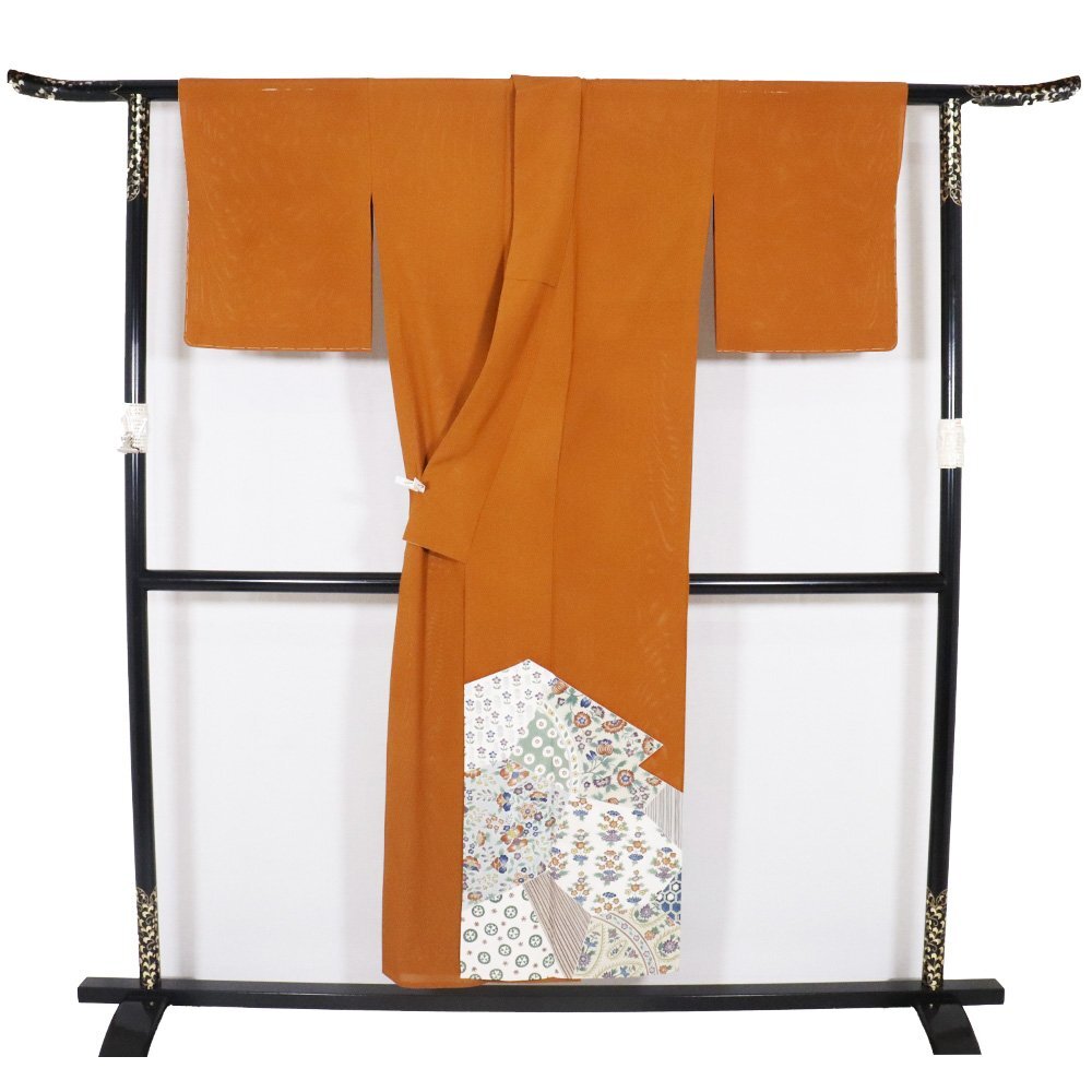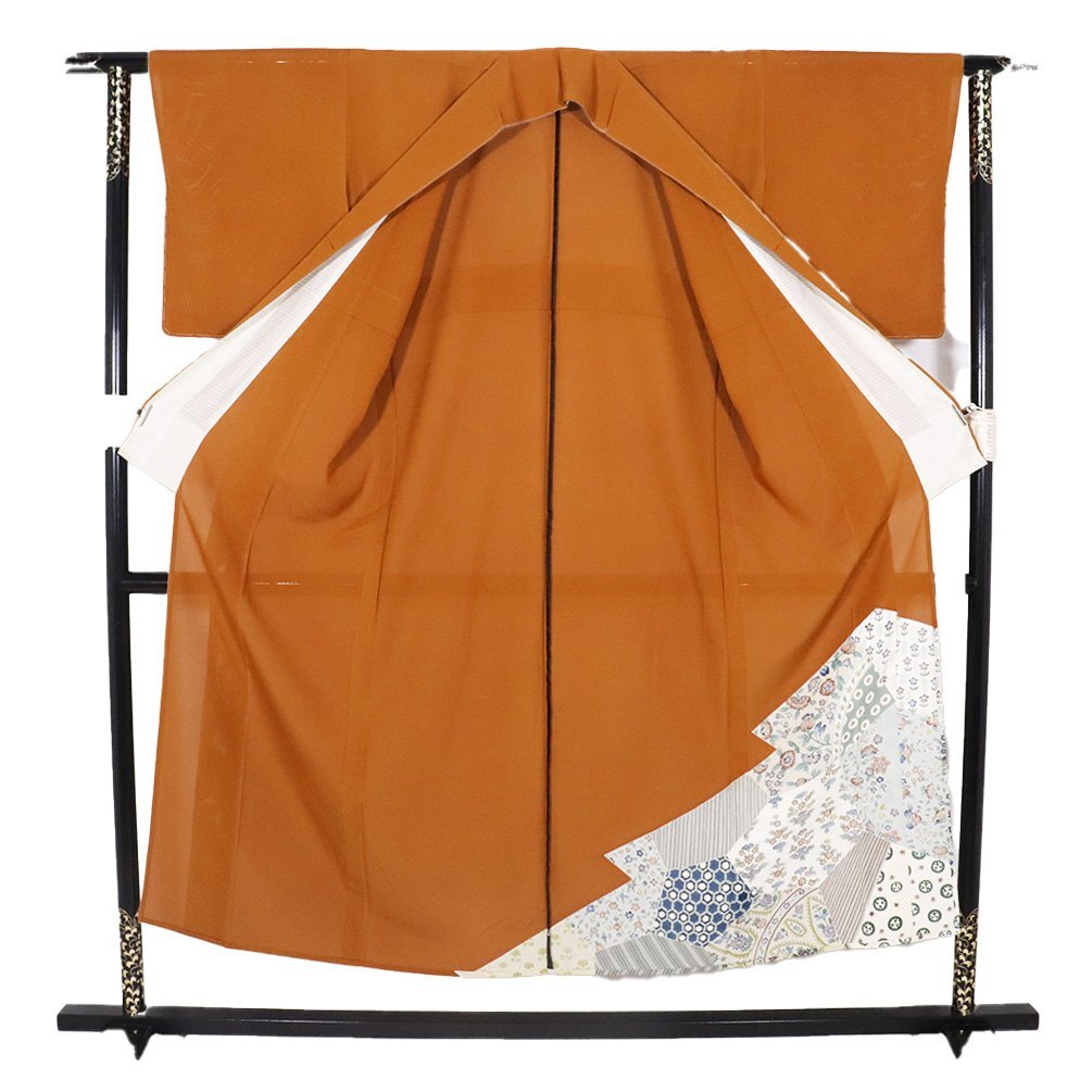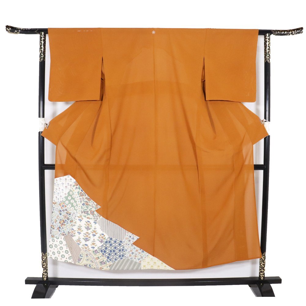 | 絽 色留袖 丹後縮緬地 金茶地 唐花 155 広襟 一つ紋 仕付け付き | |