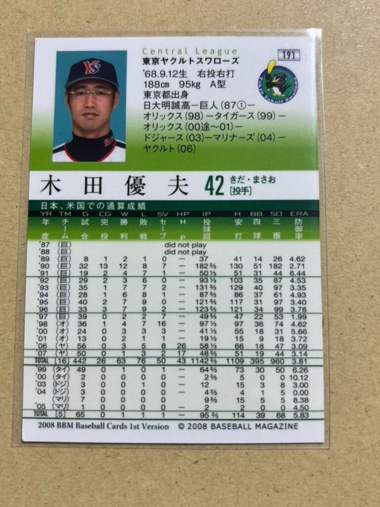 2008BBMベースボールカード1st 191 木田優夫 東京ヤクルトスワローズ ライトパックキラカード