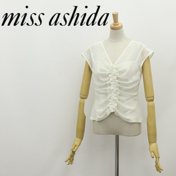 | ◆miss ashida ミスアシダ リボンテープ使い ビーズ装飾 フロントギャザー シアー ブラウス トップス オフホワイト 7 | |