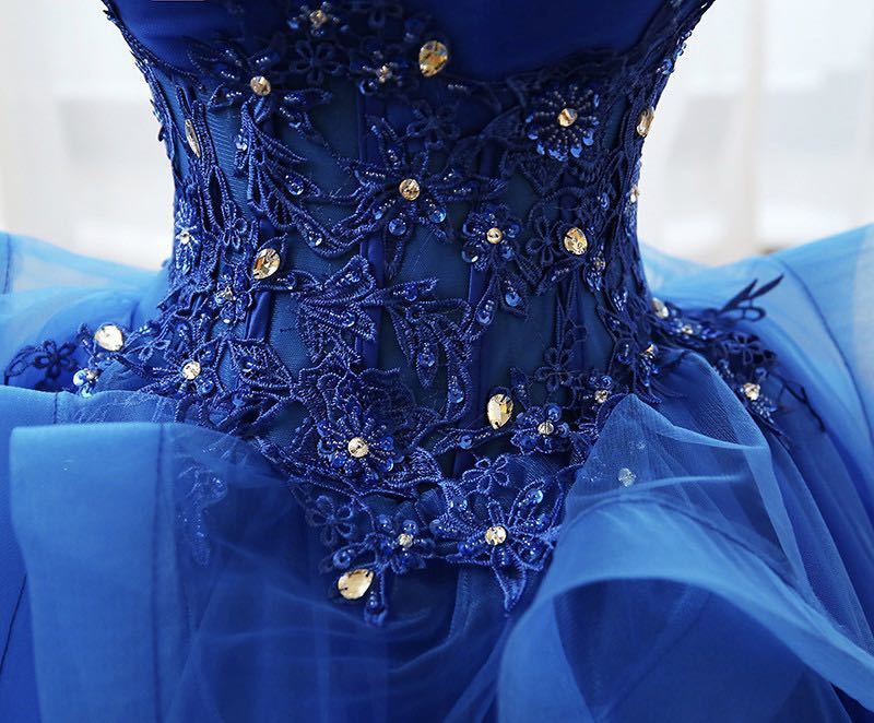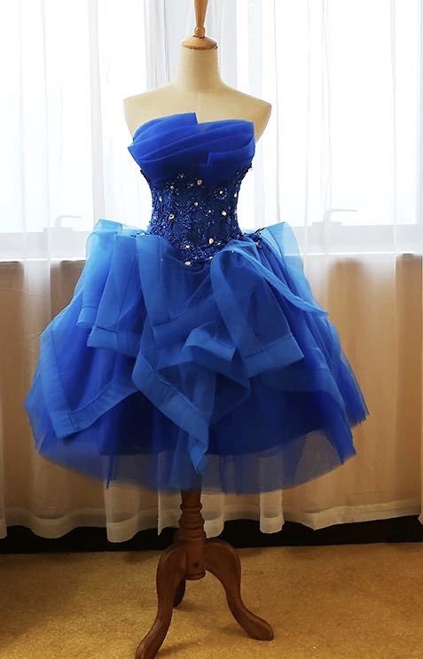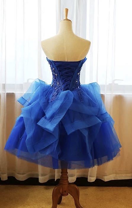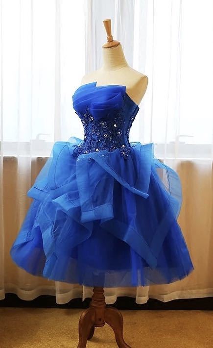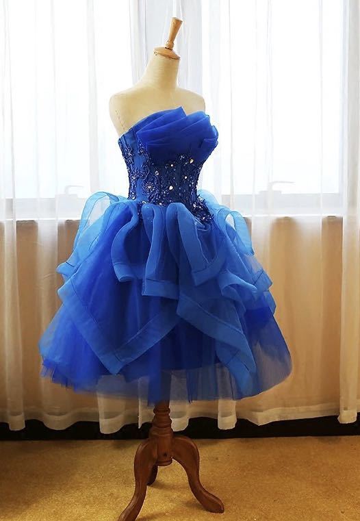 新作 可愛い サイズオーダー無料 ロイヤルブルー 色変更無料 ショートパーティードレス 膝丈 二次会 結婚式 挙式 発表会 演奏会 衣装