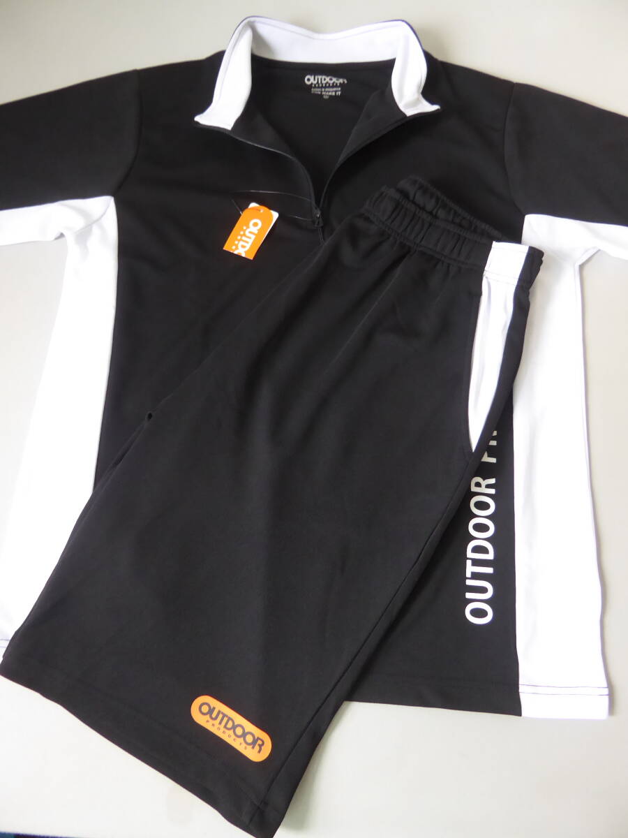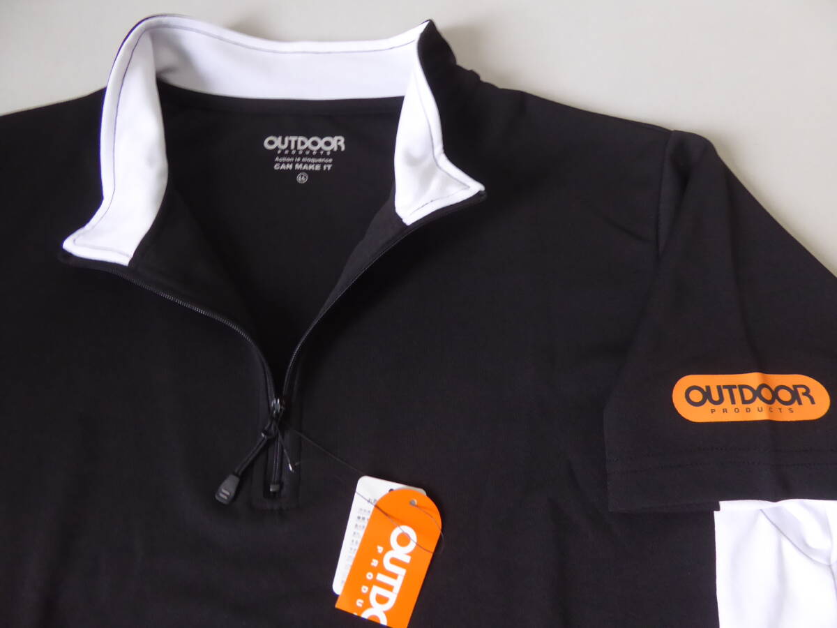 OUTDOOR PRODUCTS アウトドア プロダクツ ストレッチ ハーフジップ半袖シャツ ハーフパンツ 上下セット LL 黒白