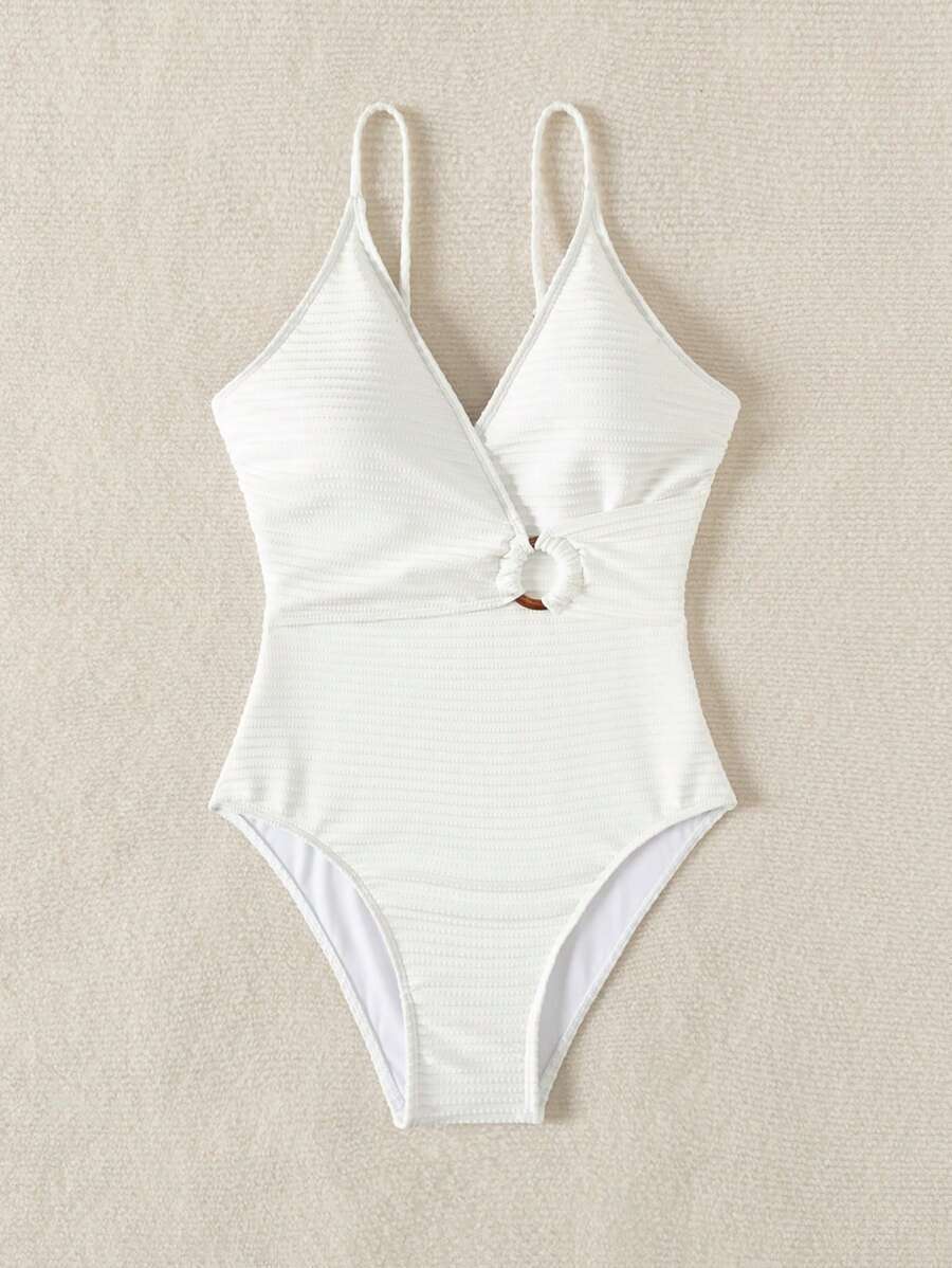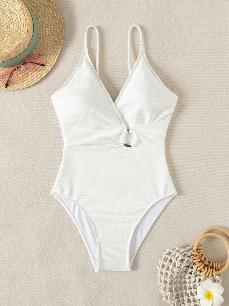 レディース 水着 ワンピース ワンピース水着 ソリッドカラー サークルデコレーション付き