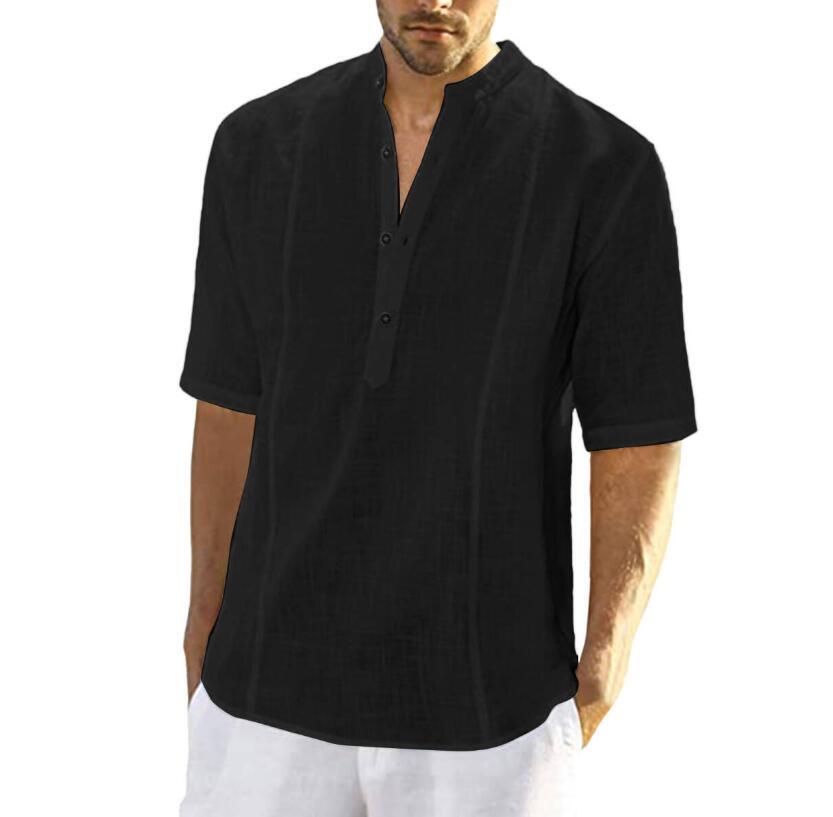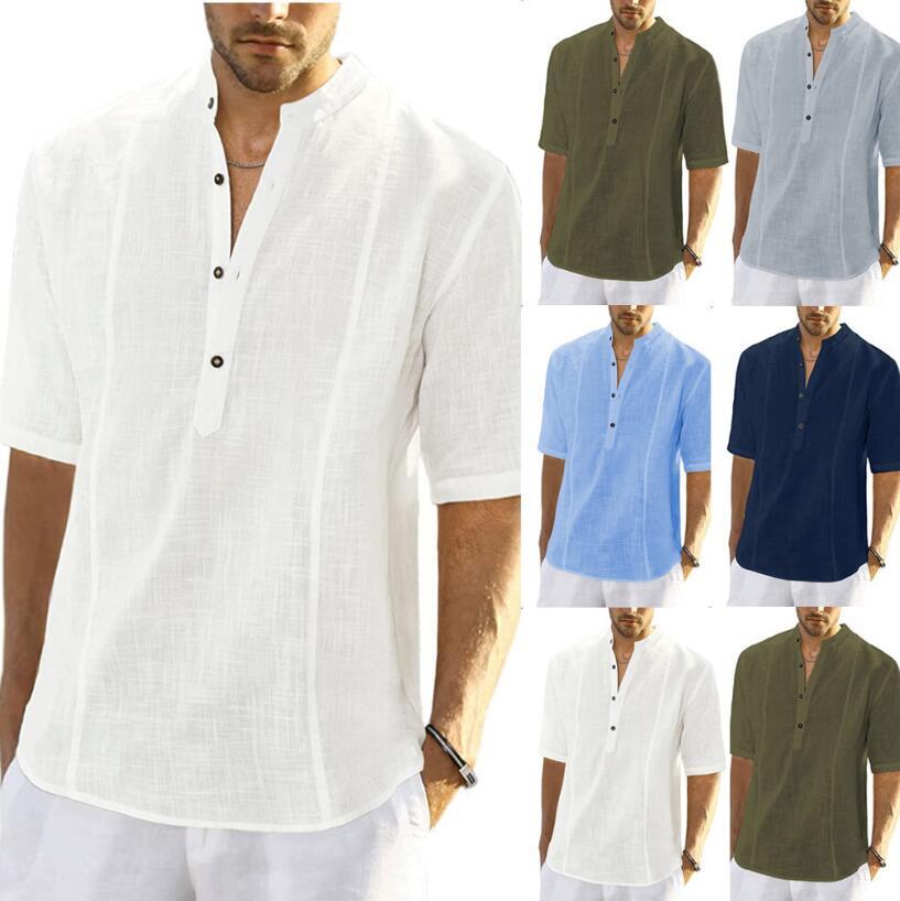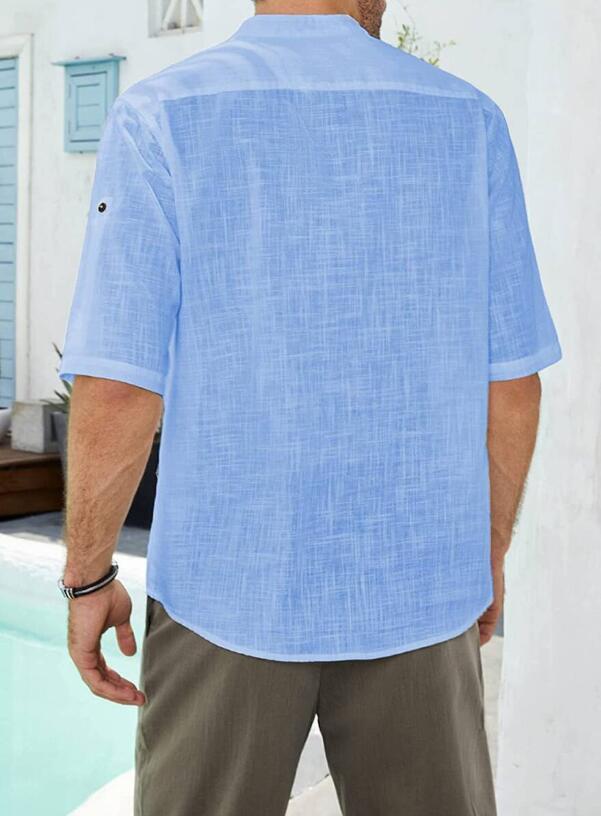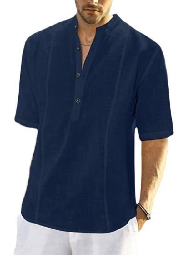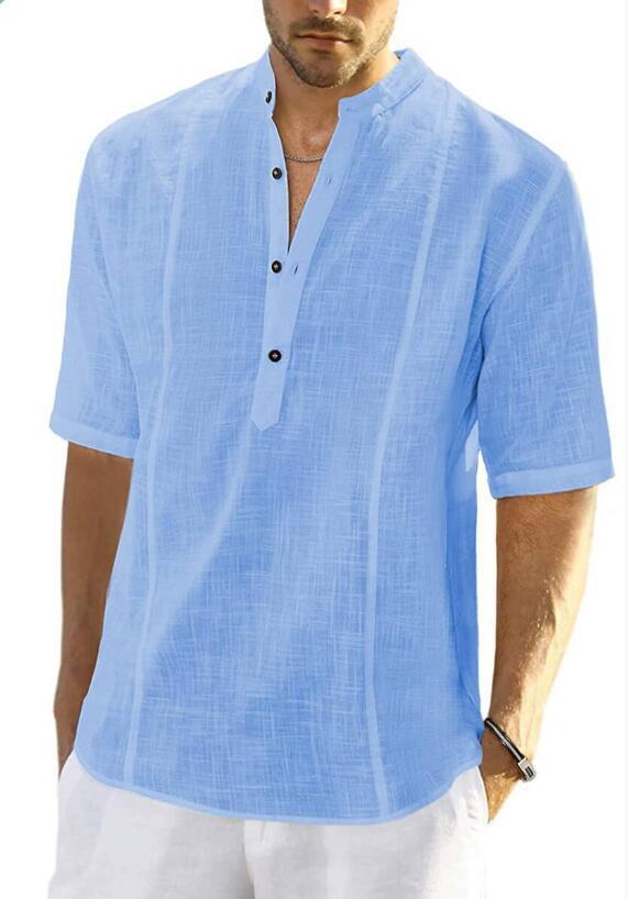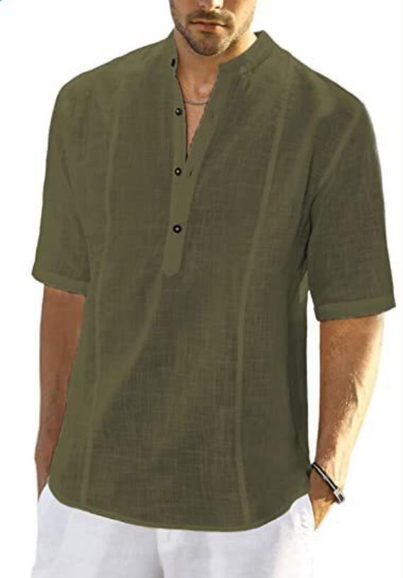 S-3XLサイズ選択 / 半袖シャツ メンズ 5分袖 綿麻シャツ 麻シャツ コットンシャツ 開襟 カジュアルシャツ 涼しい 通気性 夏物 / グリーン