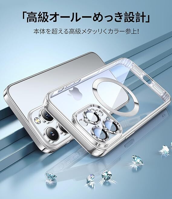 mj-N73★silver【本体の色・チタニウム金属五色 】iPhone 15 pro max 用 ケース MagSafe充電対応 一体型レンズ保護 人気 韓国 クリア 耐衝撃 米軍MIL規格 耐久性 SGS認証 カバー アイフォン15promax用 カバー 6.7 インチ ケース(シルバー)