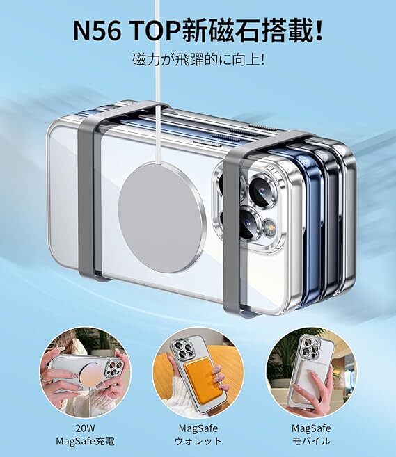 • 【吸力を60%向上・もっと高速充電体験!】まだケーブルで充電しているのか? これを試してみて!完璧に配置された磁石により、いつでもどこでもワイヤレス20W高速充電を体験が実現します。更に、今年に磁力技術により、新磁石配列でマグネットの吸力を60%向上させた、iPhone15promaxの充電効率が大幅に改善されます。