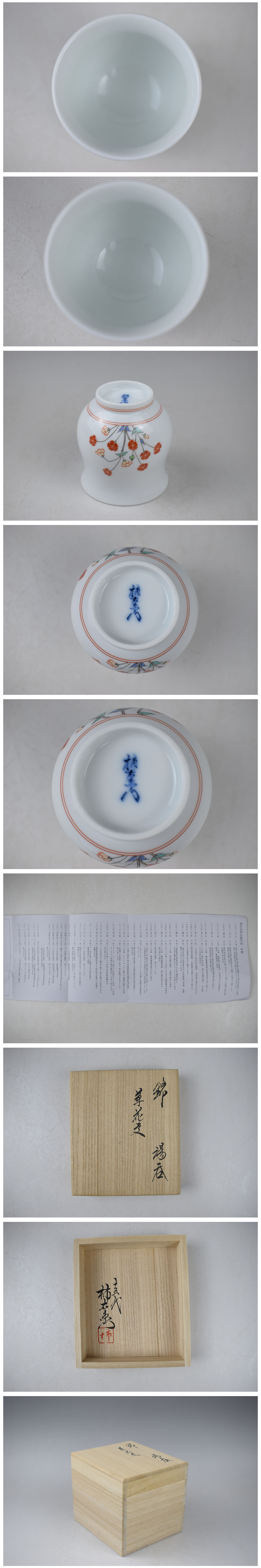 【十五代酒井田柿右衛門 錦草花文湯呑 共箱 柿右衛門窯 真作保証】