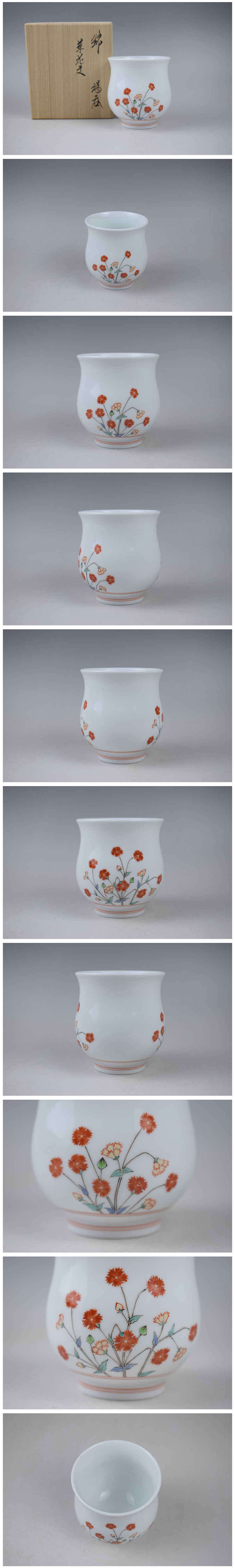 E123 十五代酒井田柿右衛門 錦草花文湯呑 共箱 柿右衛門窯 真作保証