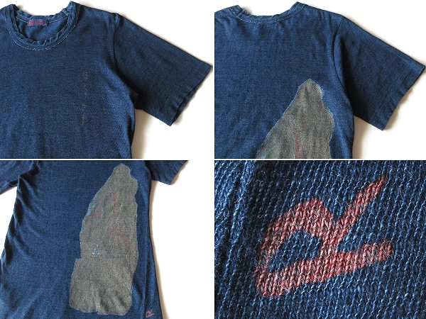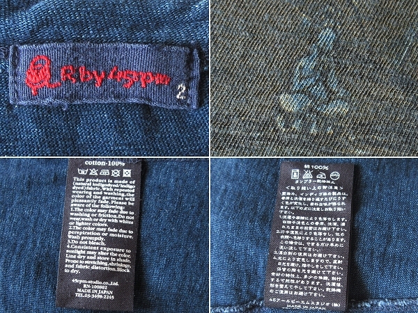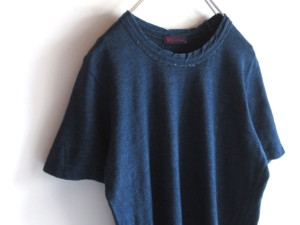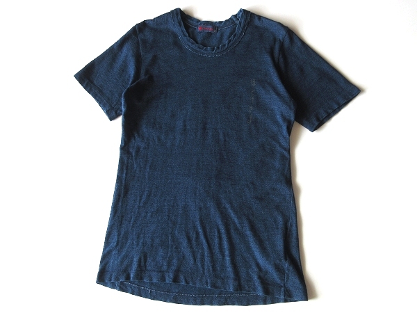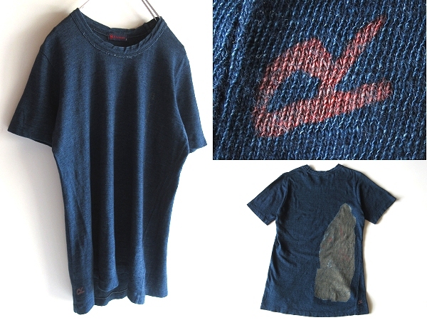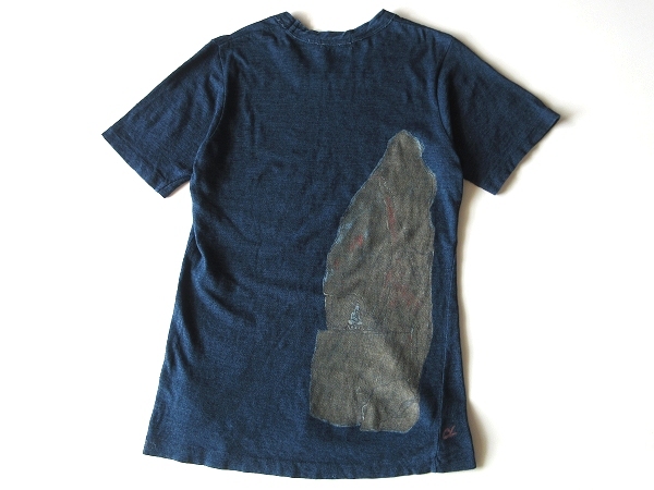 R by 45rpm Rロゴ/仏様/ほとけさまプリント インディゴ染め コットン天竺 Tシャツ 半袖 カットソー 2 藍色 日本製 Umii908 Badou-R