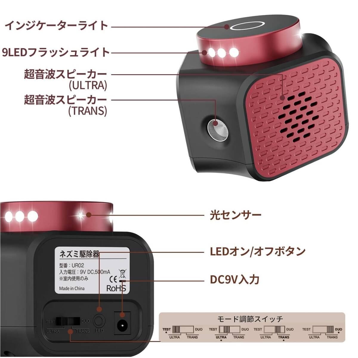 超音波器は、ネズミだけが聞き取れる周波数の音を継続的に発生させる装置です。