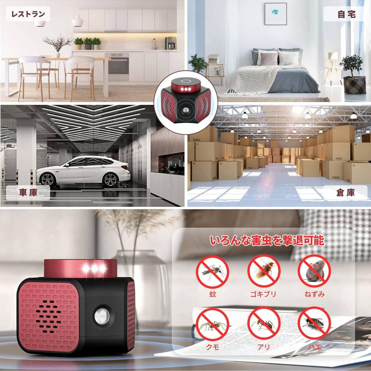 (ネズミ、蚊、クモ、ゴキブリ、コオロギ、ナンキンムシ、ノミ、アリ、ミバエなど害虫を追い払うことができます。)