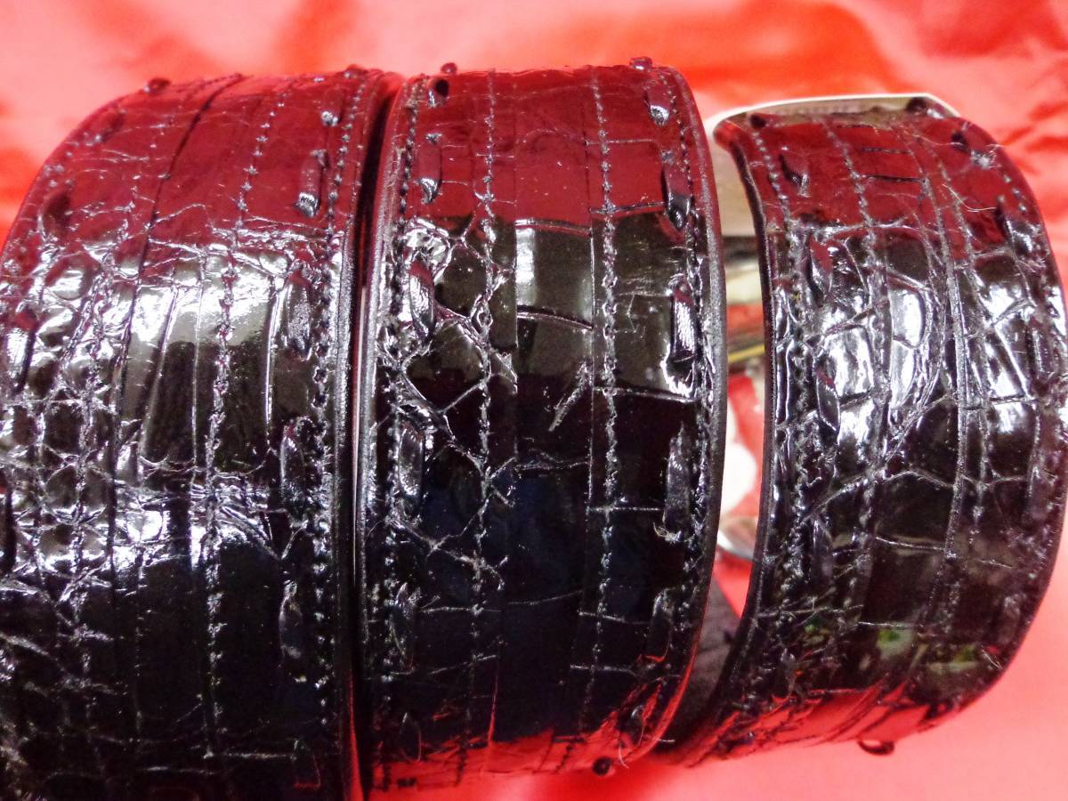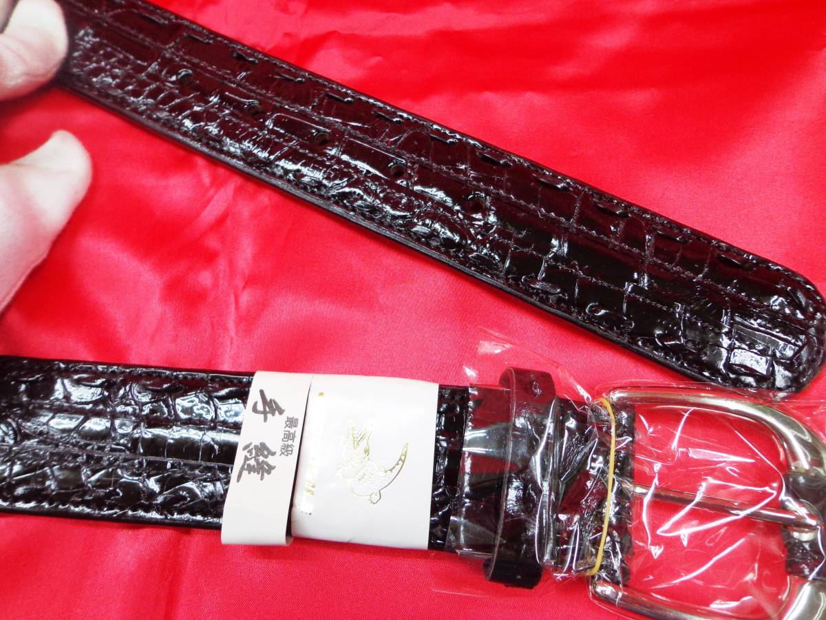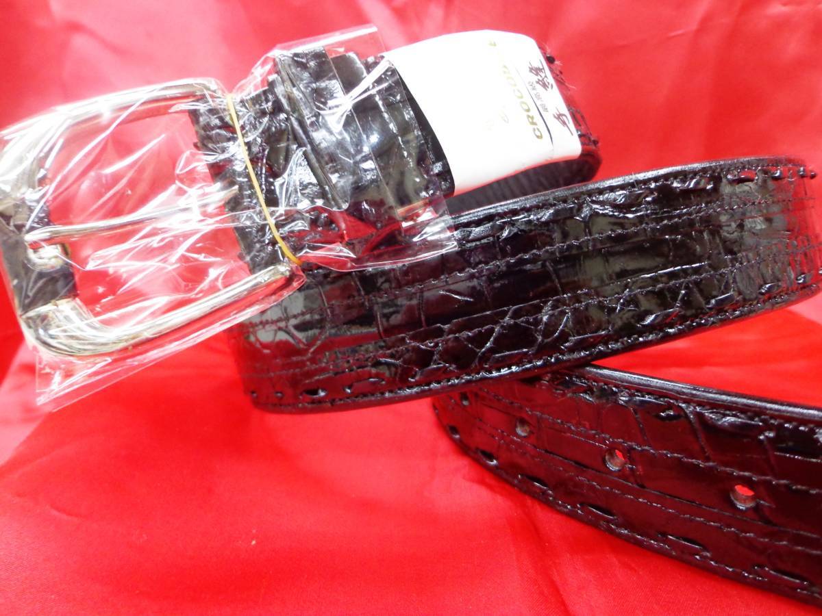 本クロコ:ラインステッチベルト40mm現物品(黒)P-367 | |