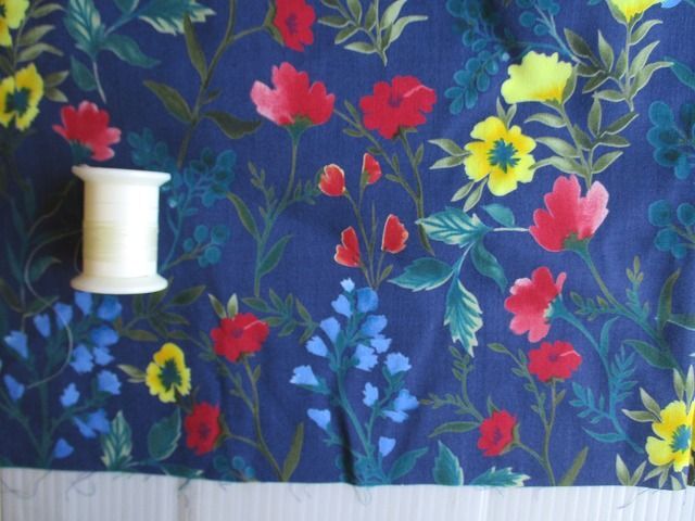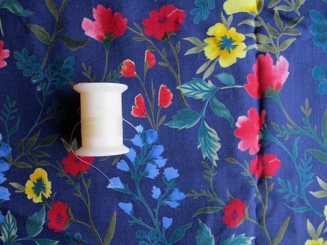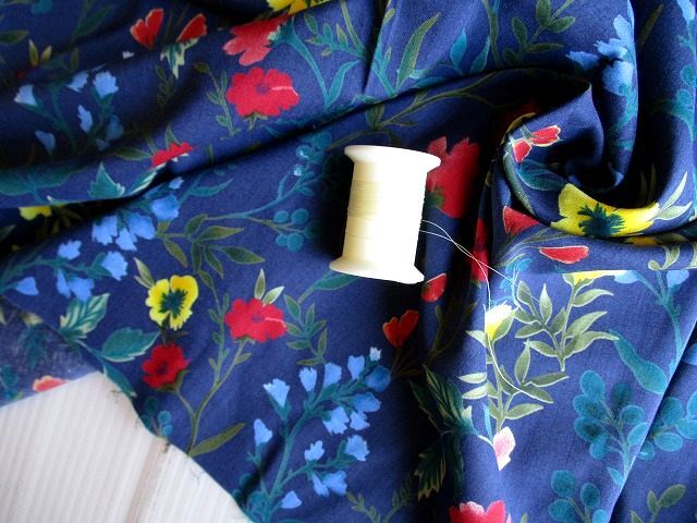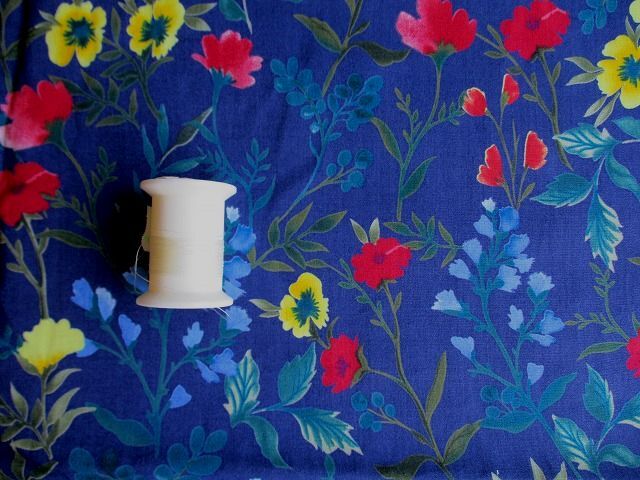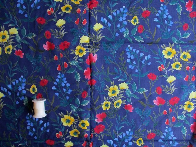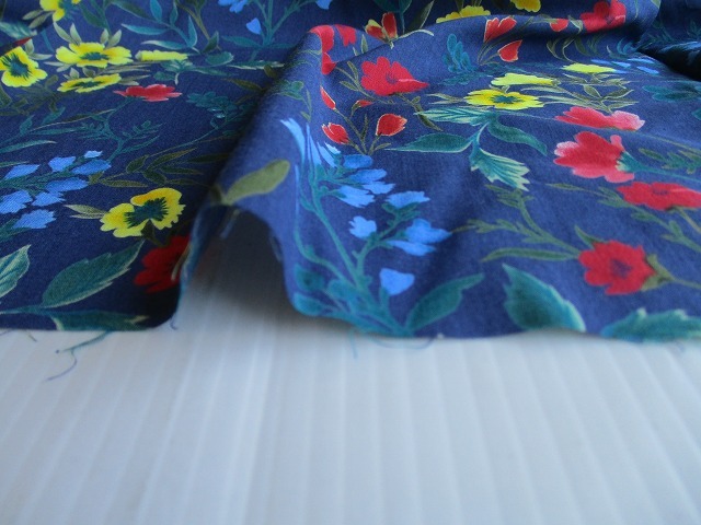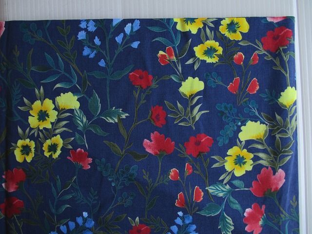 | ◆紺地赤黄青フラワープリント生地 | |||