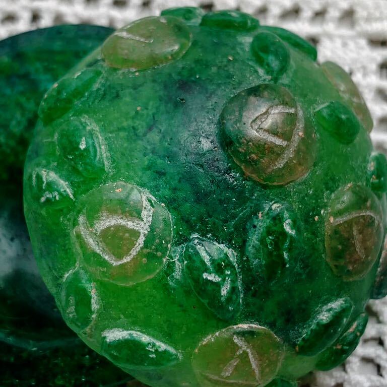 レリーフ周りに白く見えるのは創作過程で使用する石膏です。(写真2,10参照)高温で焼かれており、仕上げの磨きでなるべく落とすようにしていますが、取りきれずに残ってしまいます。パート・ド・ヴェールの特徴でもあります。食品に使用しても大丈夫です。