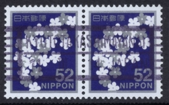 弔事 52円 使用済横ペア 旧型欧文ローラ印 KYOTO