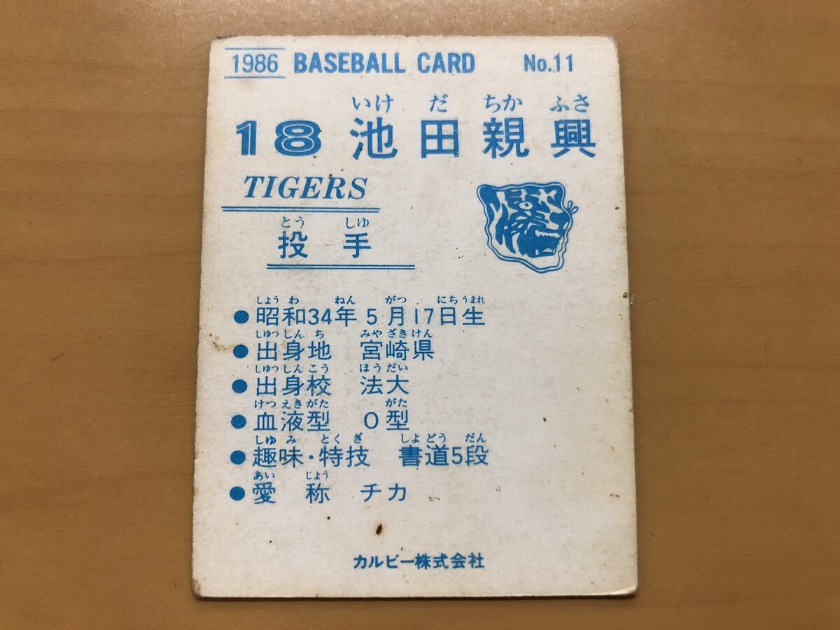 カルビープロ野球カード 1986年 池田親興(阪神タイガース) No.11