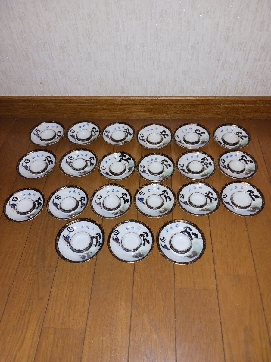 旧家引き揚げ品の、九谷焼・色絵金彩・盃台・計21客です。
