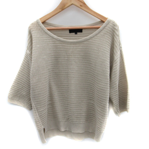 アンタイトル UNTITLED ニット カットソー 七分袖 ラウンドネック ラメ 2 ベージュ /SM14 レディース