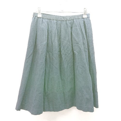 ◇ KUMIKYOKU サイドファスナー バックウエストゴム 透け感なし 膝丈 フレア スカート サイズ2 ネイビー レディース E