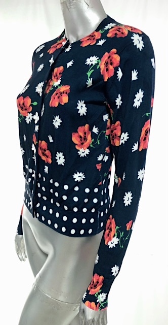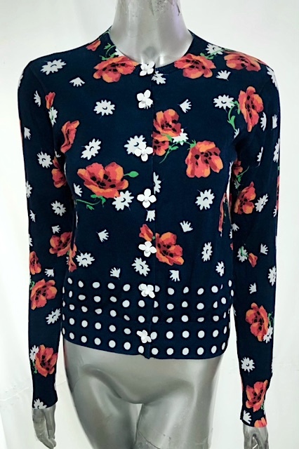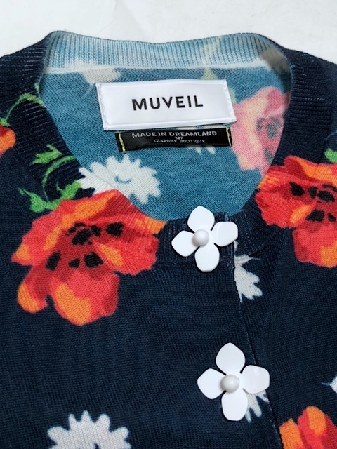 二点落札で送料無料! M02 定価¥39,600【極美品】ミュベール アネモネプリントカーディガン 38 レディース トップス ネイビー 花柄 ドット
