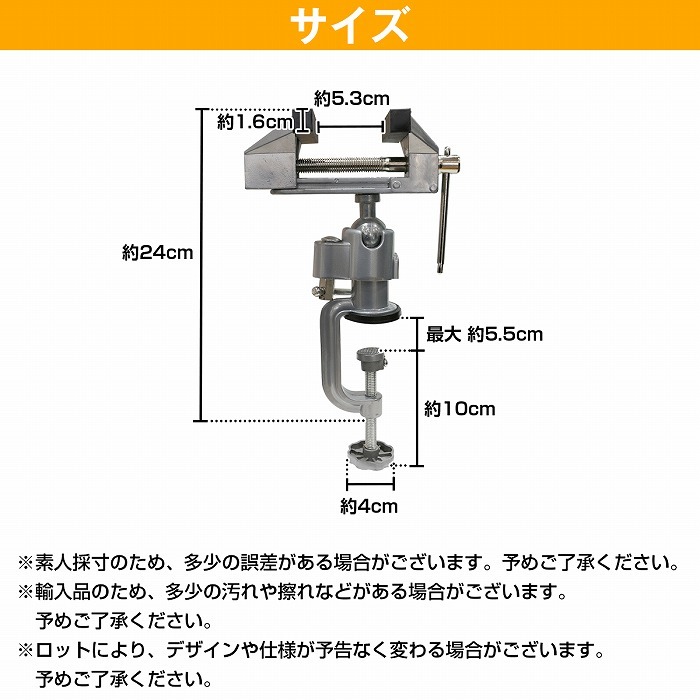 【送料無料】首振り 回転 調整 式 テーブル ベンチ バイス 360度 クランプ 卓上 万力 開口幅 50mm 加工 作業 台 DIY 木工 固定 天板 研磨