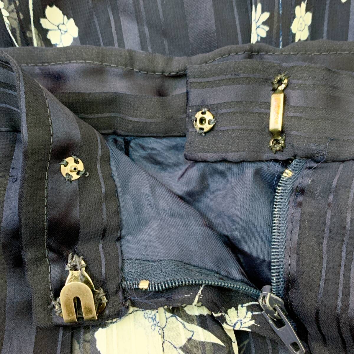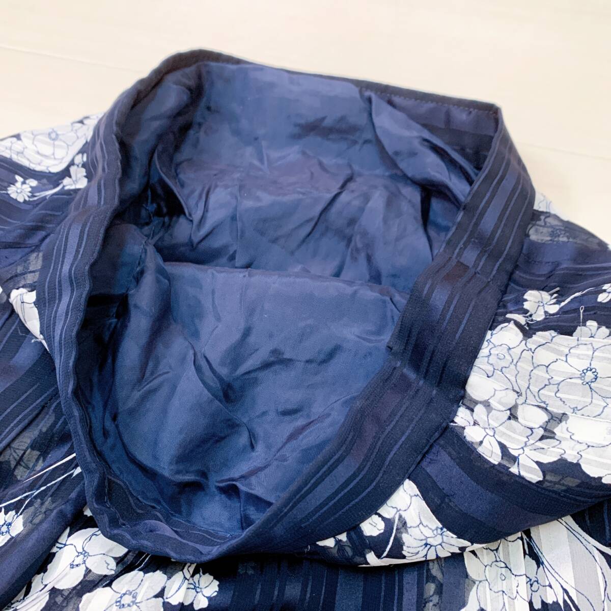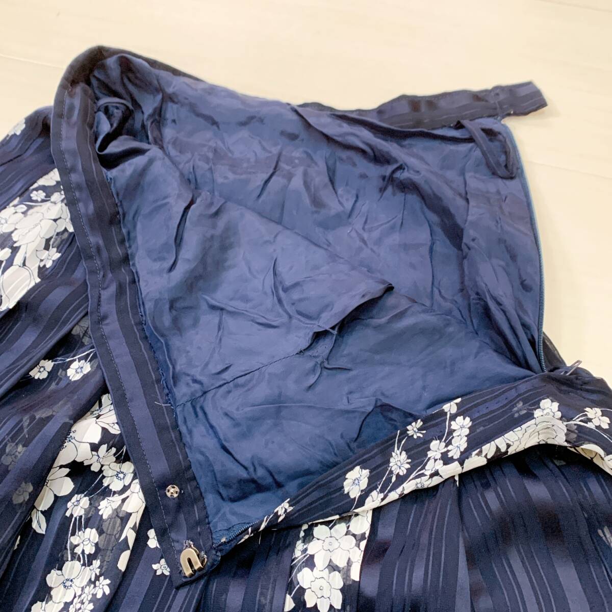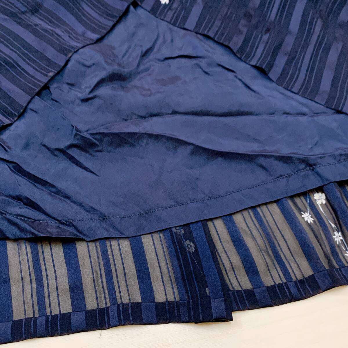 YH0537 レディース 総花柄 ひざ下丈 フレアスカート 薄手 裏地あり 華やか エレガント レトロ ネイビー 紺 万能 USED 古着