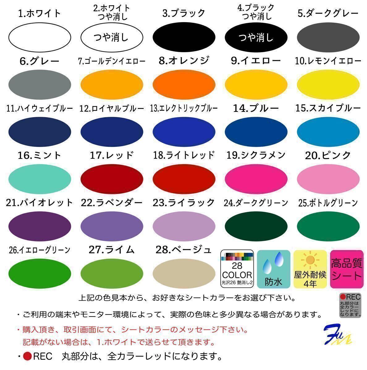 | 商品説明 | 車のリアガラス、リアボディに貼るステッカーです。 ★ステッカーサイズ M 91.5×180㎜ ★シートカラー 全28色 グロス仕上げ 光沢 26色 マット仕上げ つや消し 2色 (●REC 丸部分は、全カラーレッドになります。) ★価格は1枚の値段です。 ★貼り方説明書付き。 ★カッティングステッカーです。 入札前の注意点 ・ハンドメイド品です。 ・ご注文頂き、発送致します。 ・画像の下地(背景)は、商品に含みません。ステッカーのみです。 ・ご利用の端末やモニター環境によって、実際の色味と多少異なる場合があります。 ・購入頂き、取引画面にて、カラーのメッセージ下さい。 選択がない場合は、1.ホワイトを送らせて頂きます。) |