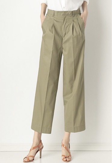 MACPHEE☆マカフィーTOMORROWLAND コットン ワイドクロップドパンツ カーキ
