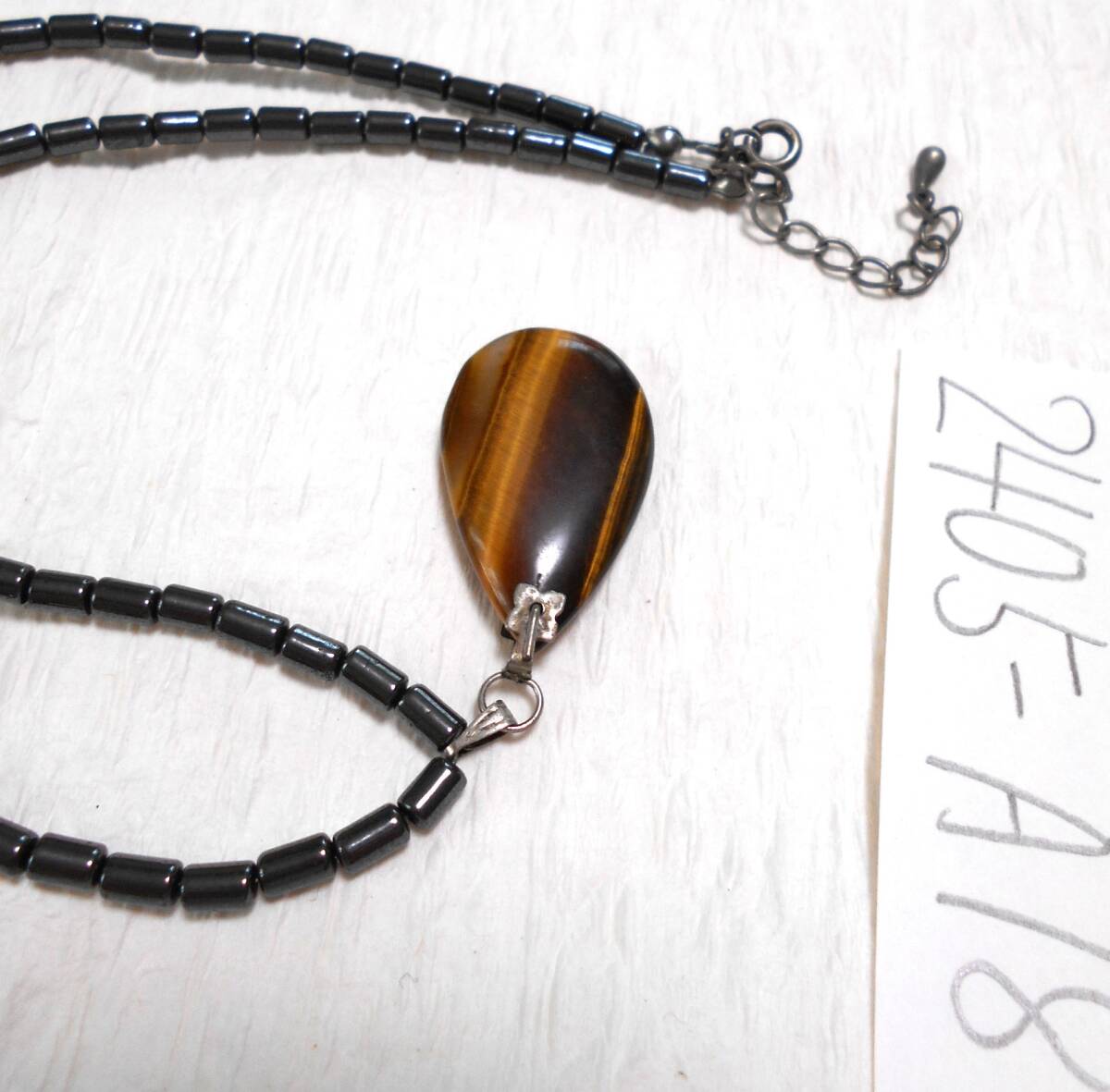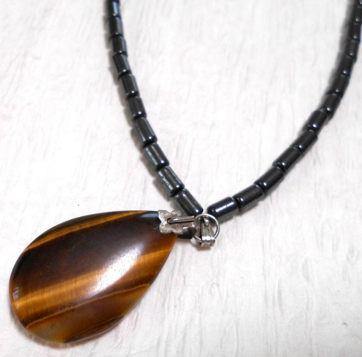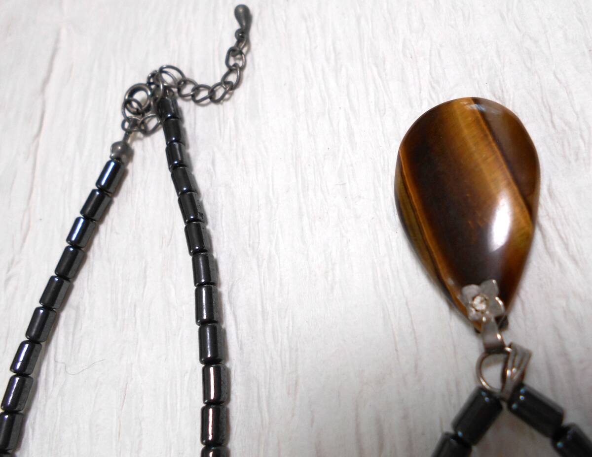レトロ 天然石 虎目石にマットなチェーンのネックレスです。