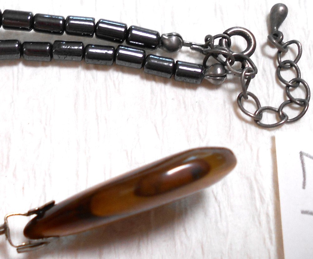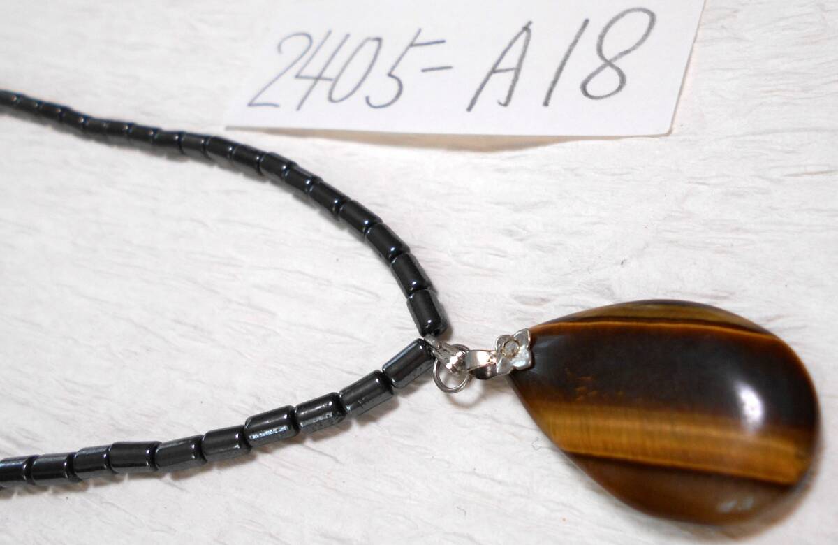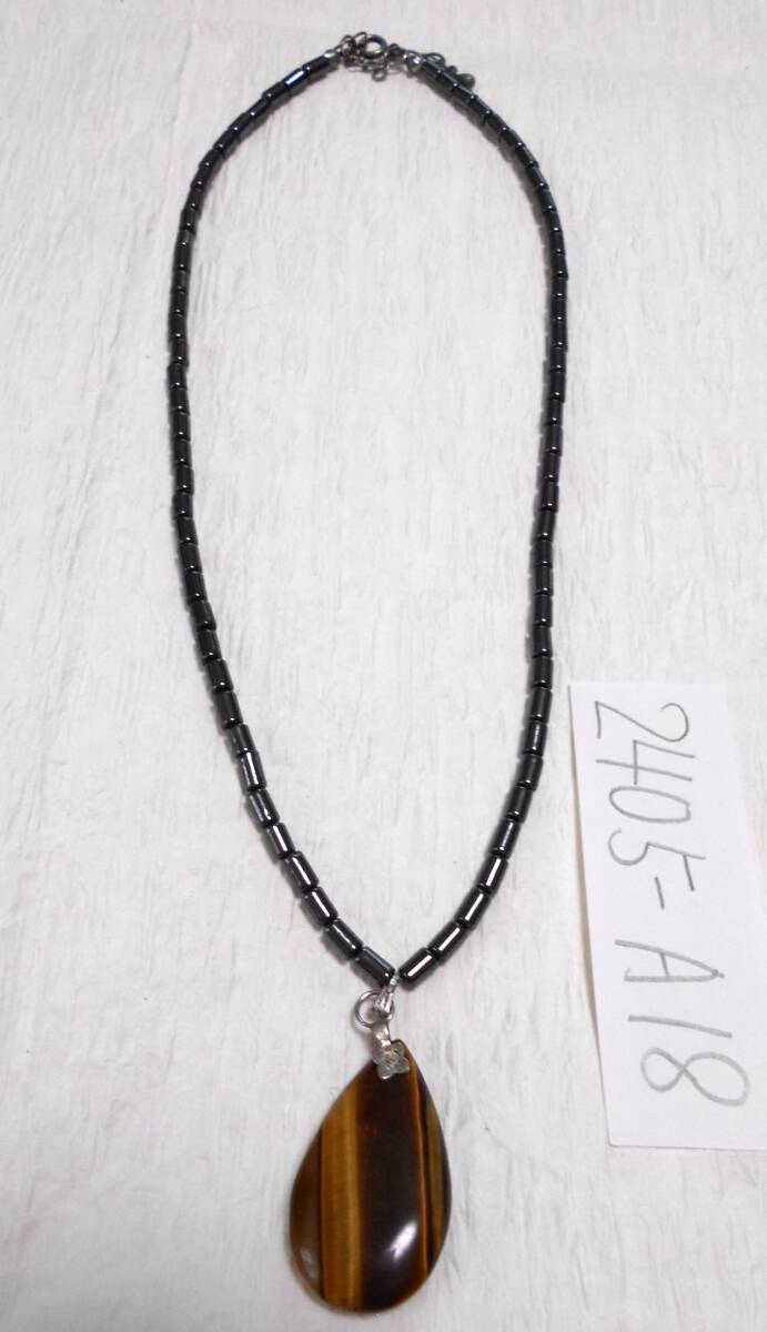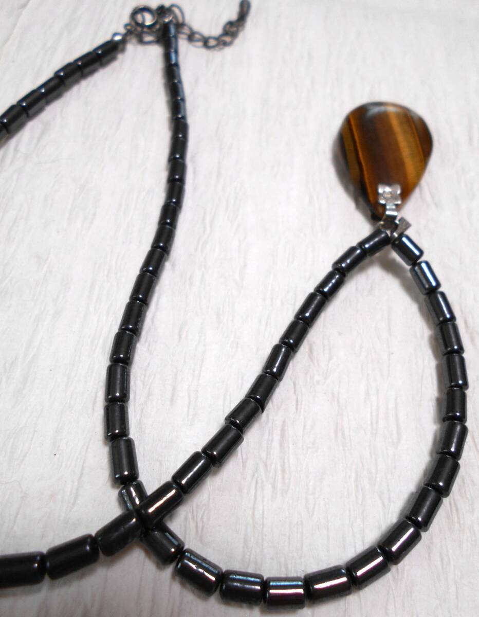 レトロ 天然石 虎目石にマットなチェーンのネックレスです。