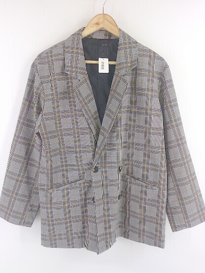◇ Heather ヘザー チェック 4B オーバーサイズ 長袖 ジャケット サイズF グレー ベージュ系 レディース E