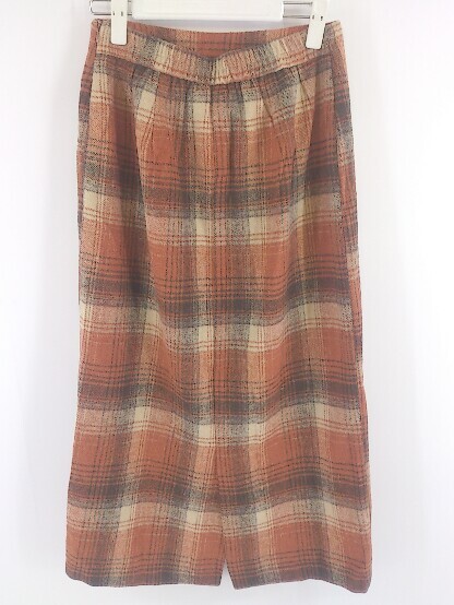 ◇ Alma Design アルマデザイン チェック ロング タイト スカート サイズ L オレンジ ベージュ レディース E