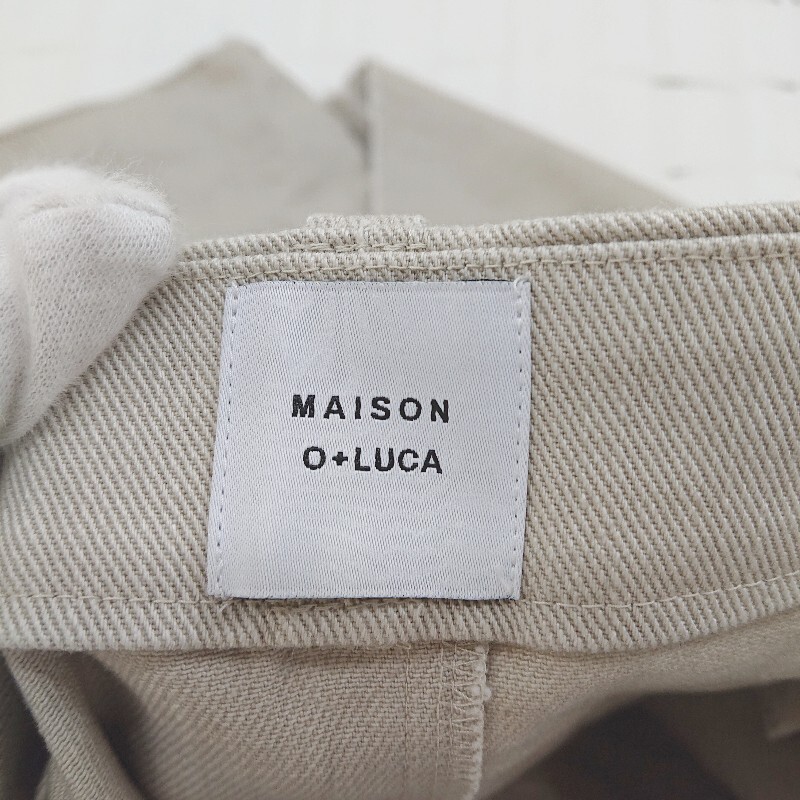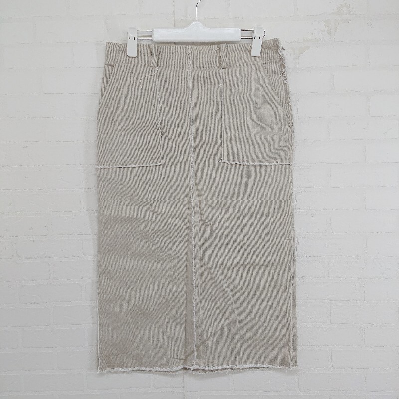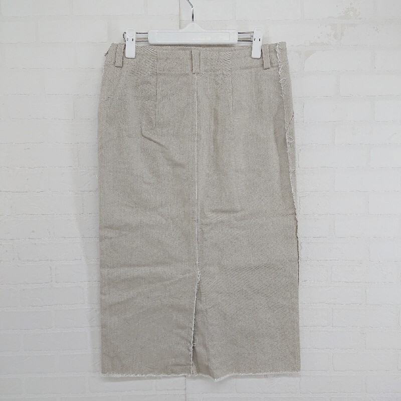 ◇ MAISON O+LUCA ストレッチ バックスリット フリンジ 膝下丈 タイト スカート サイズF カーキベージュ系 レディース E