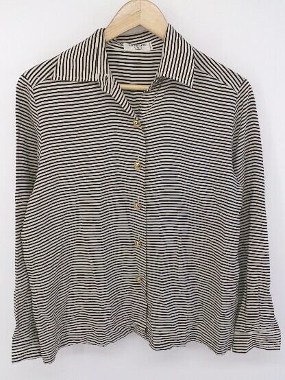 ◇ VALENTINO ヴァレンティノ イタリア製 ボーダー 長袖 シャツ ブラウス サイズ42 ベージュ ブラック系 レディース P