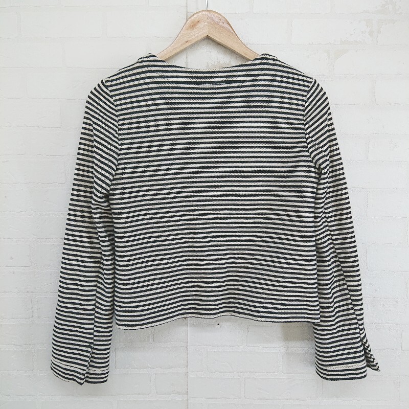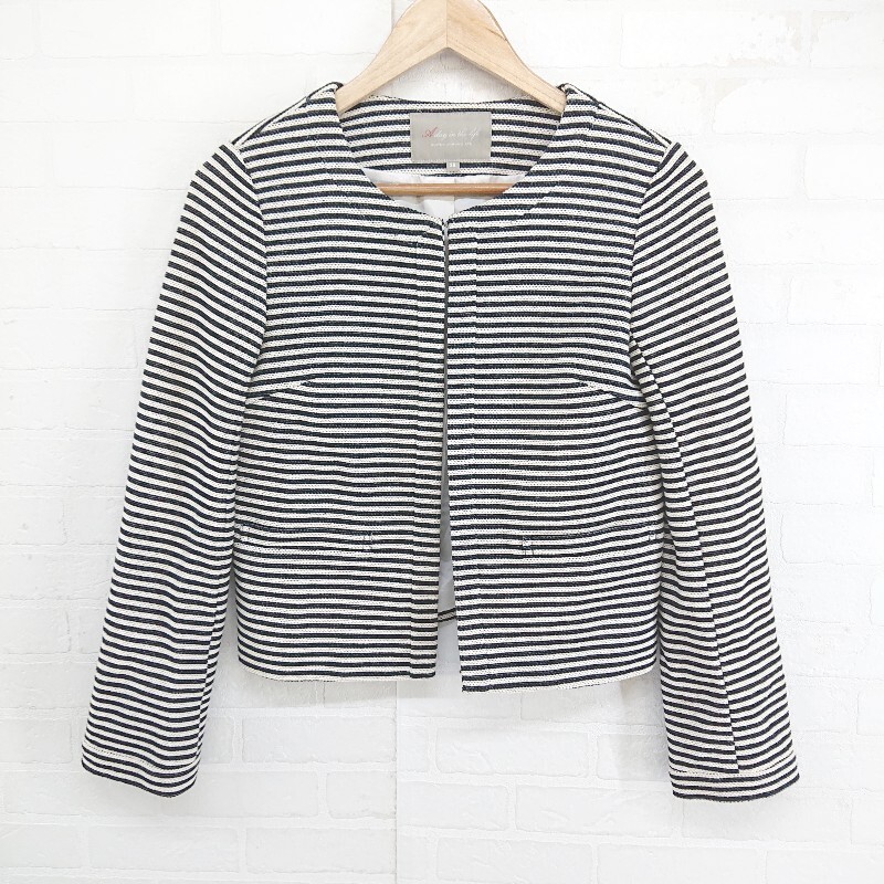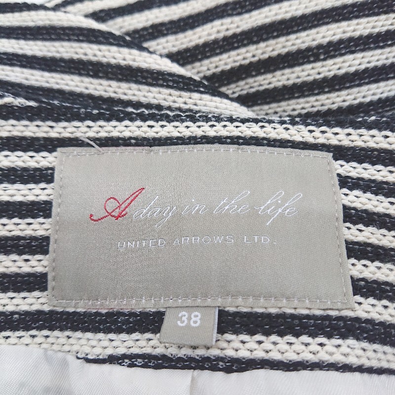 ◇ A day in the life UNITED ARROWS ボーダー 長袖 ノーカラー ジャケット サイズ38 アイボリー ブラック レディース E