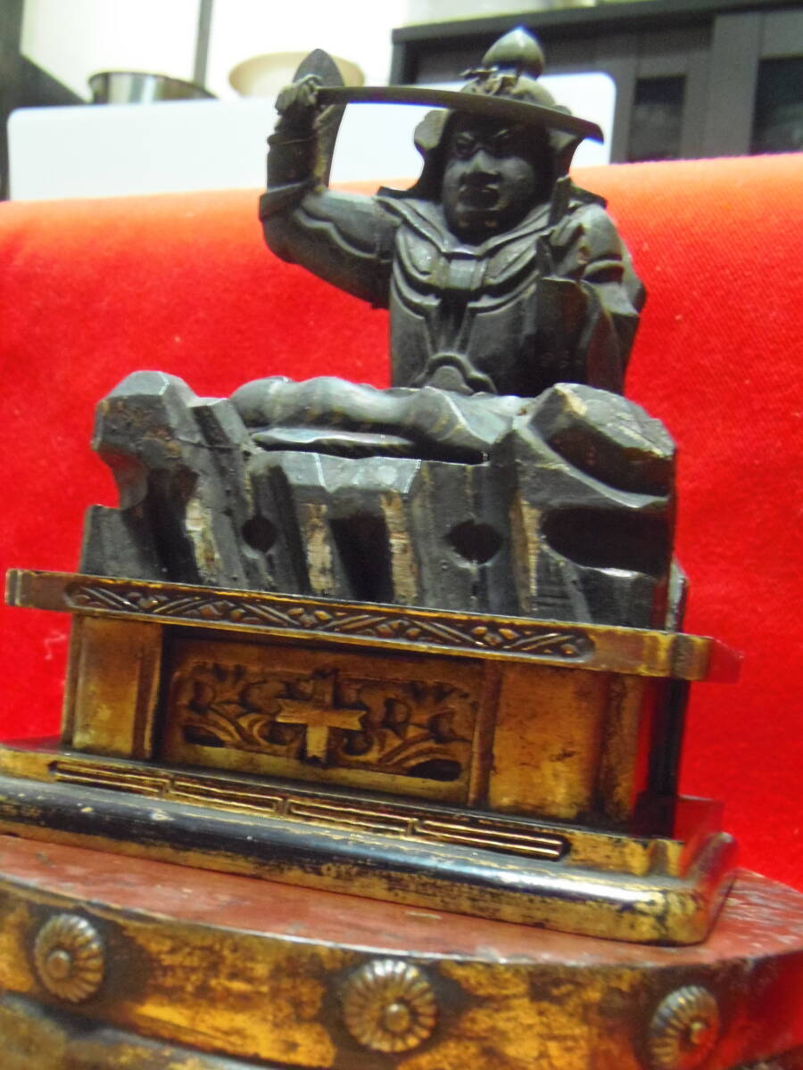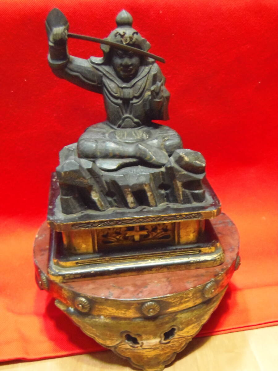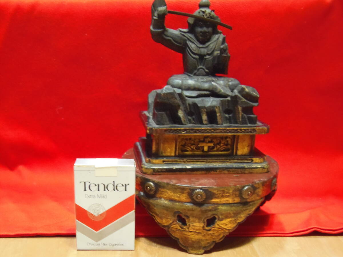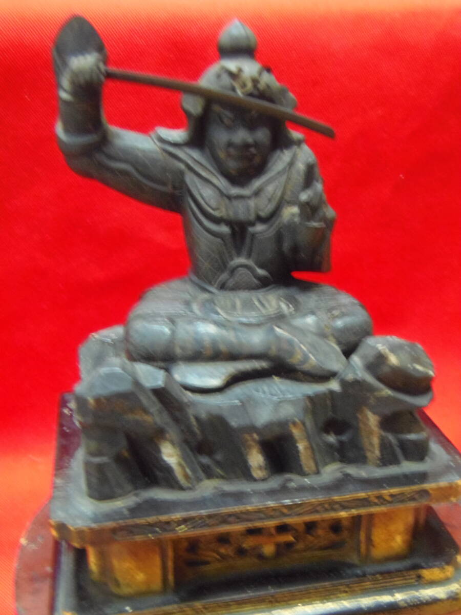 時代背景は解りません、右腕に直しがありますが全体的には綺麗な状態です、裏に佛師新井改と仏師の名前が記されています。