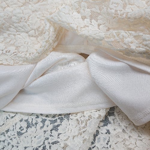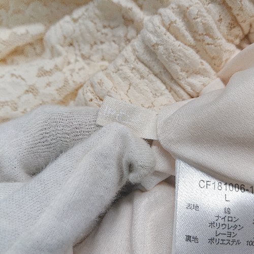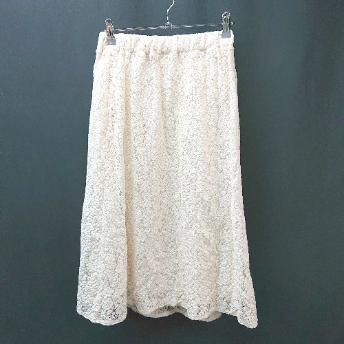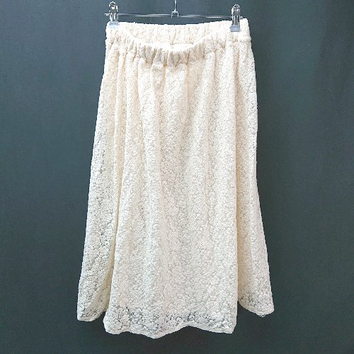 ◇ ノーブランド レース素材 ウエストゴム ロング丈 フレア スカート サイズL ベージュ レディース E