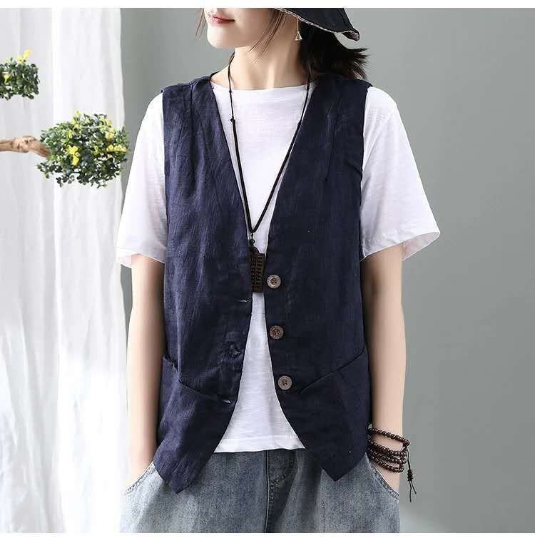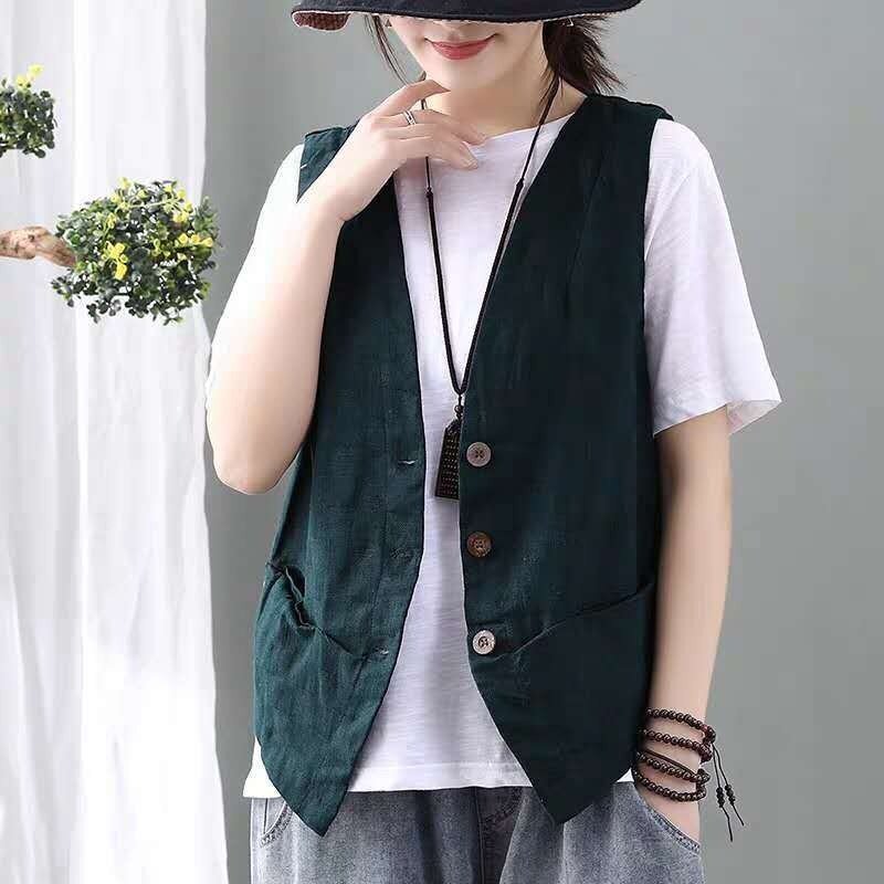 OHJ701☆新品レディース ベスト 綿麻リネンベスト ジレベスト 麻ベスト カジュアルベスト