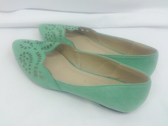 ◇ LibertyDoll リバティードール ポインテッドトゥ フラット パンプス シューズ サイズM グリーン レディース E