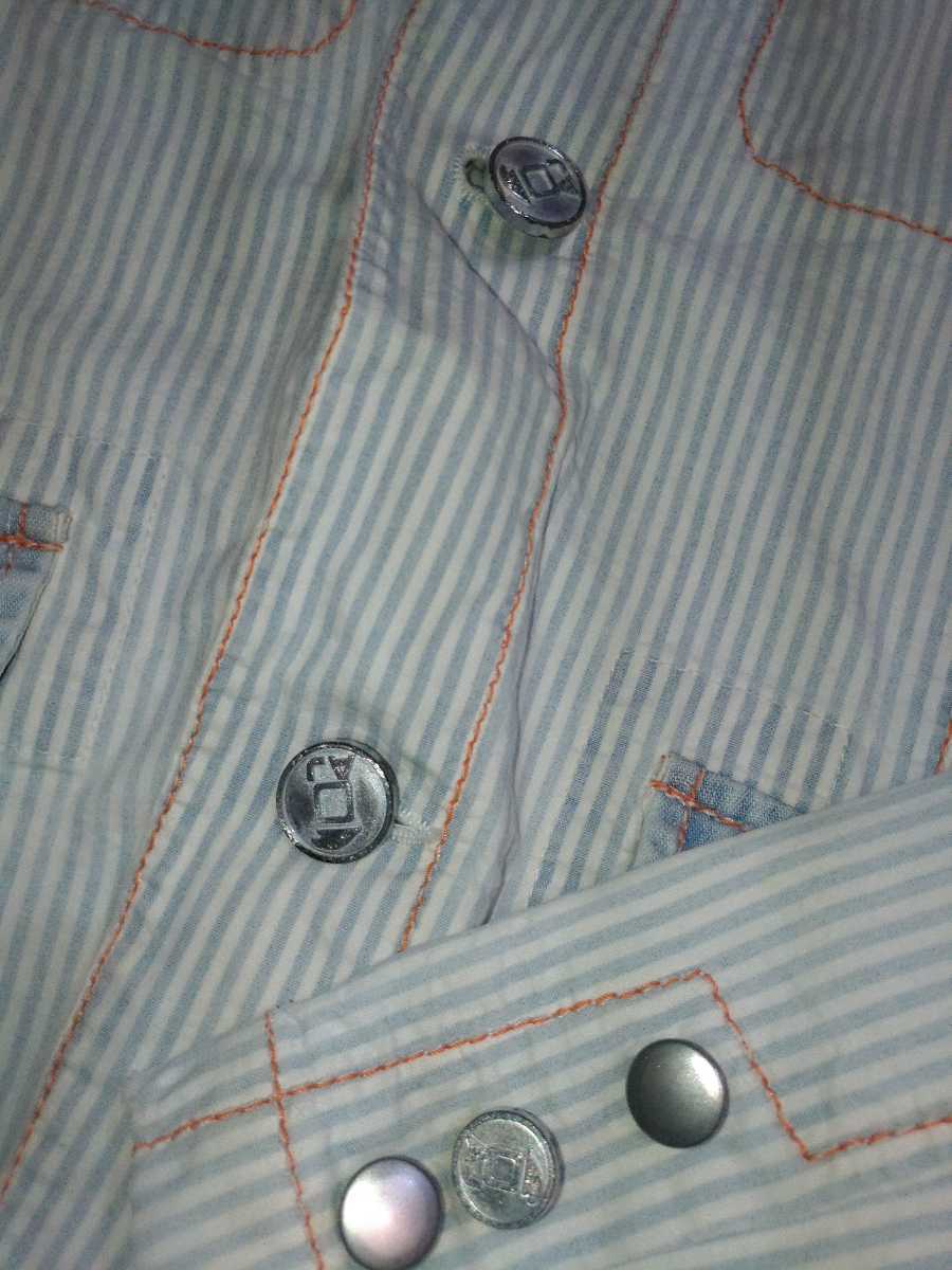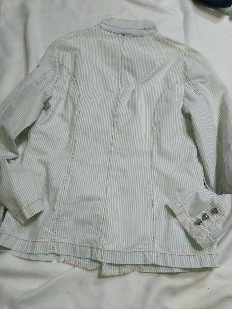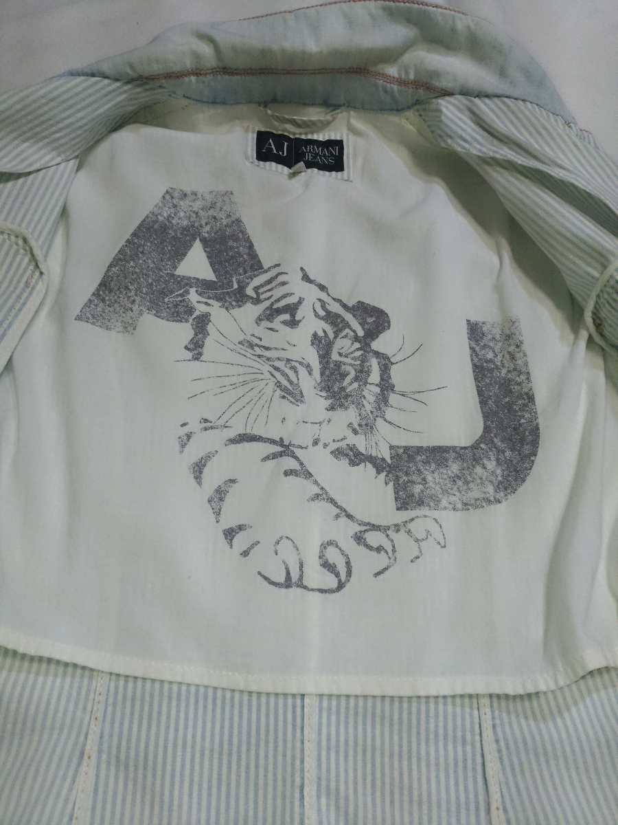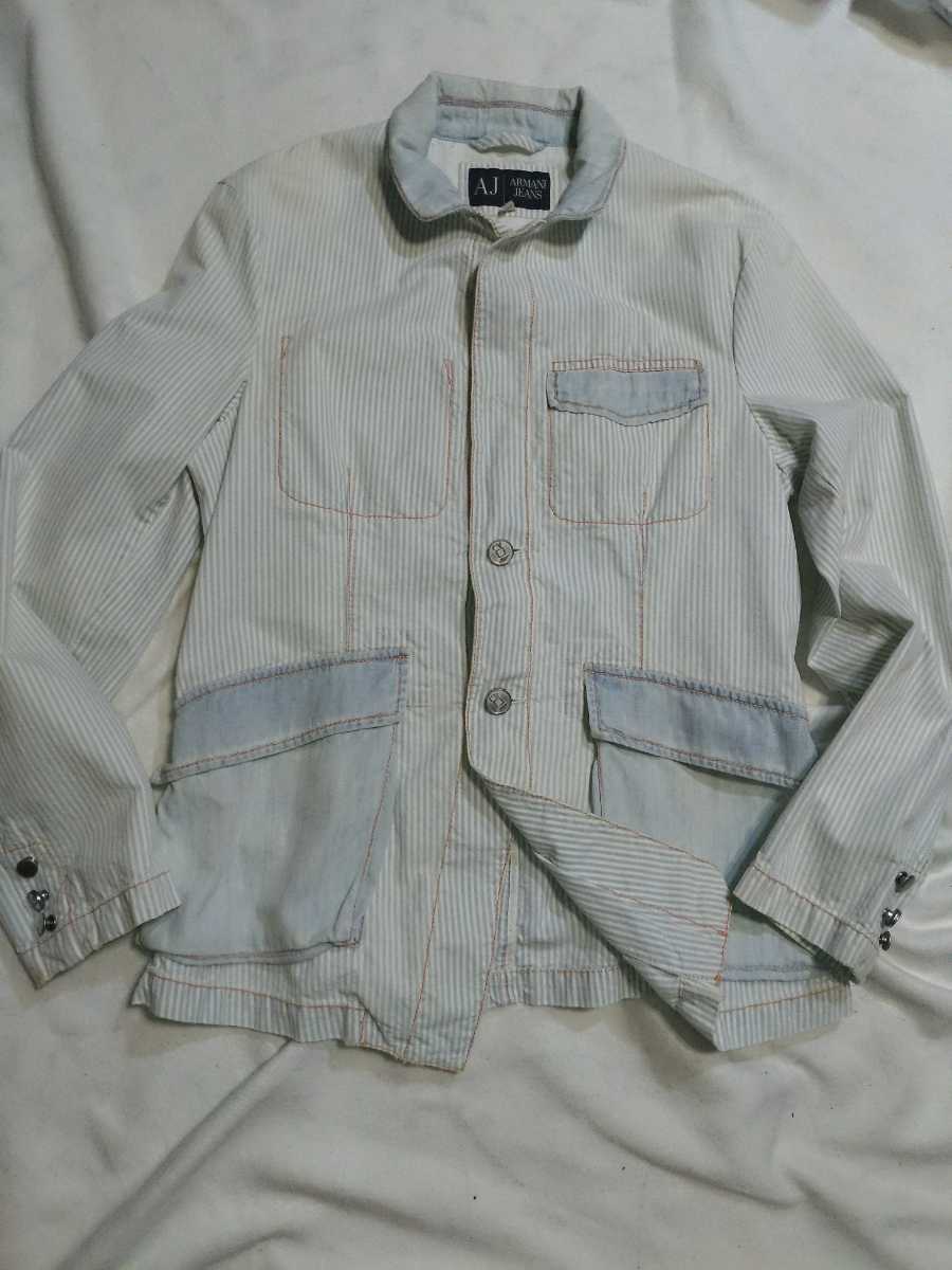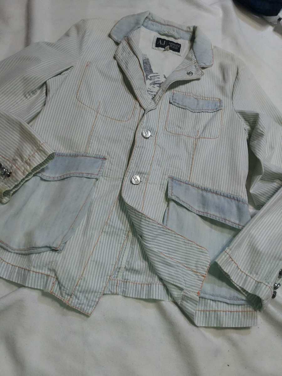 アルマーニジーンズ ARMANI JEANS デニム ジャケット ヒッコリー ストライプ ブルゾン ブルー ホワイト イタリア製 正規品