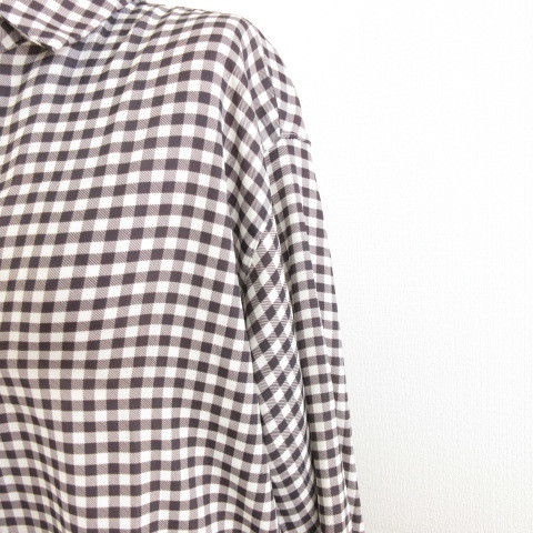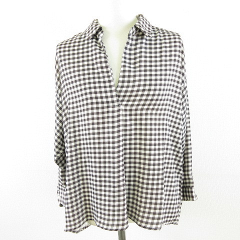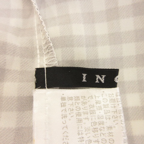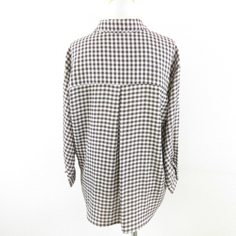 イング INGNI カットソー スキッパー 七分袖 ギンガムチェック 黒 白 M *A175 レディース