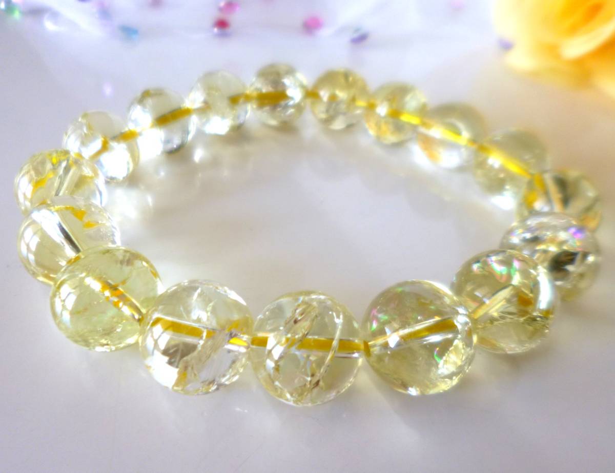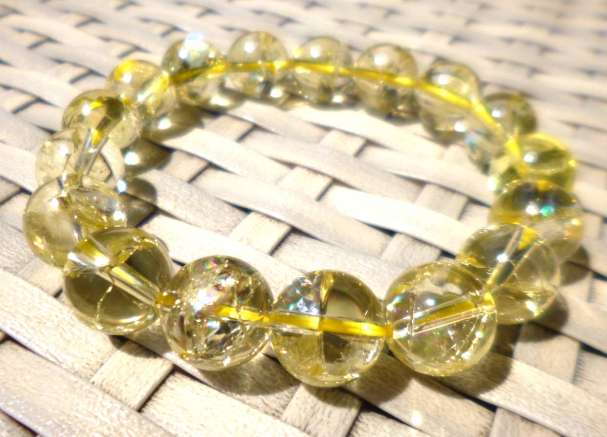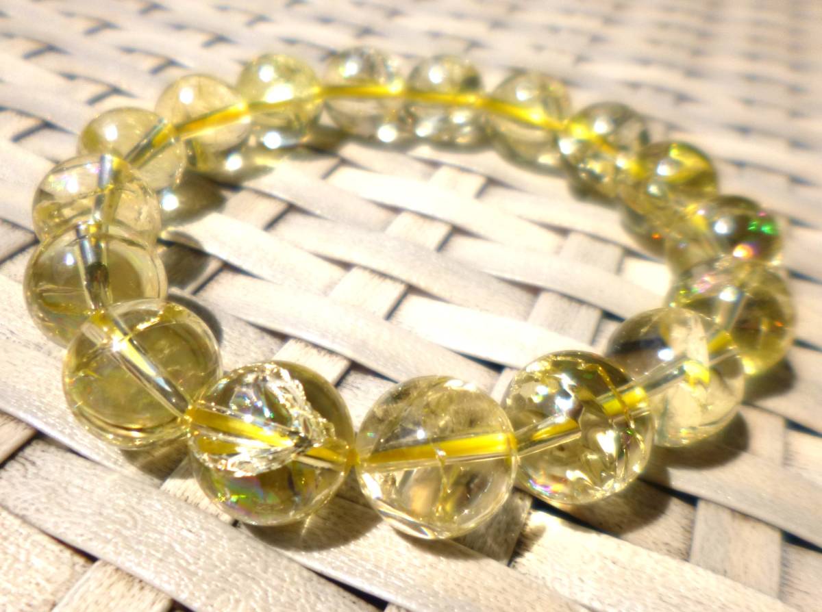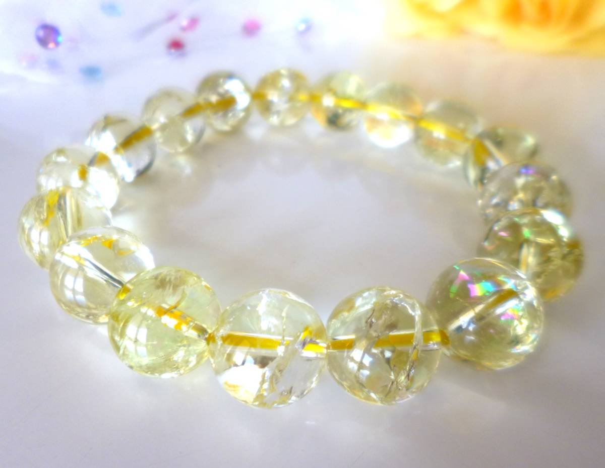 ☆素晴らしい輝き☆太陽エナジー☆バイタリティ☆疲労回復☆ヒーリング☆レインボーアイリス☆レモンクォーツ大珠12.5mm17.5cm