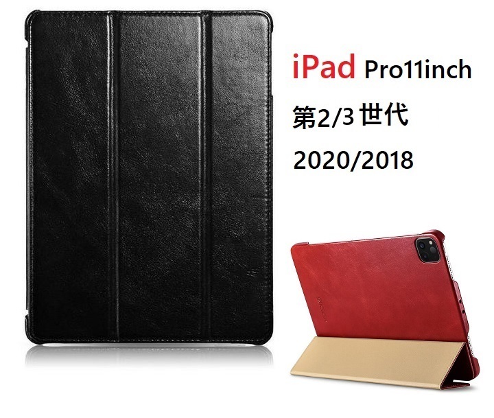 | ICARER iPad Pro11インチ第2/3世代2020/2018対応 本革 ビンテージ レザーケース 三つ折り オートスリープ機能 |