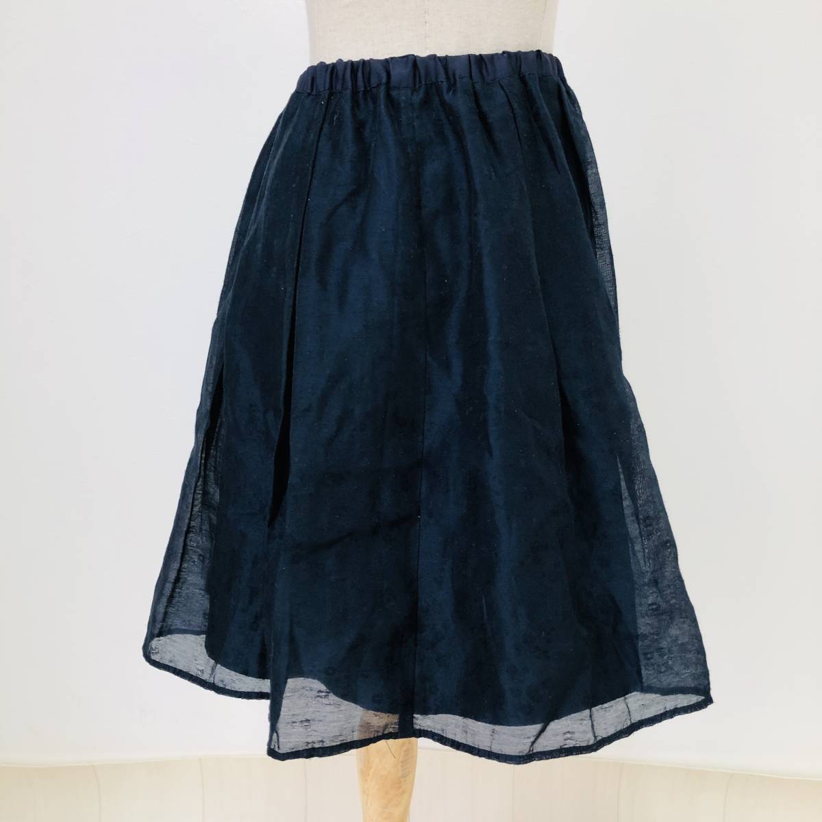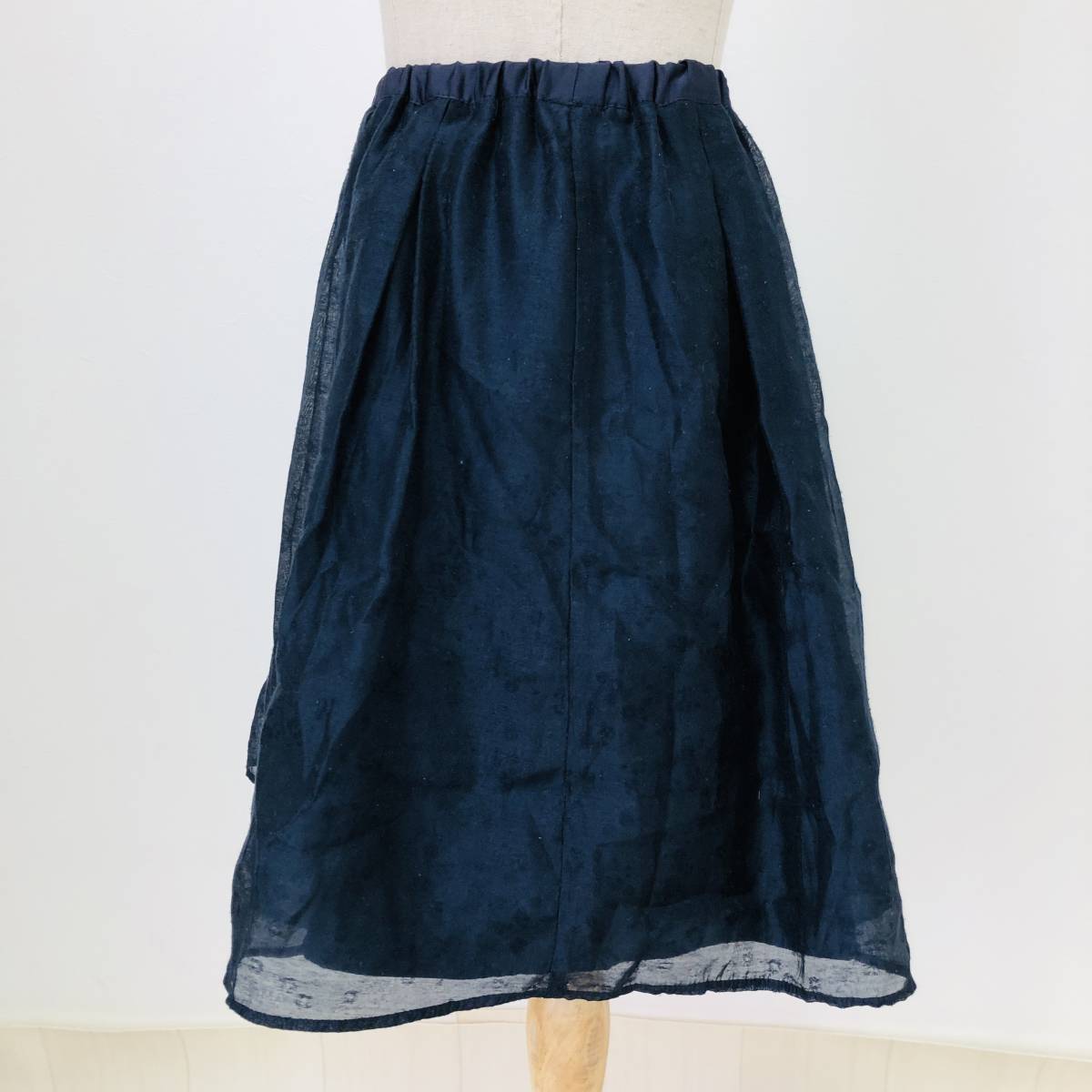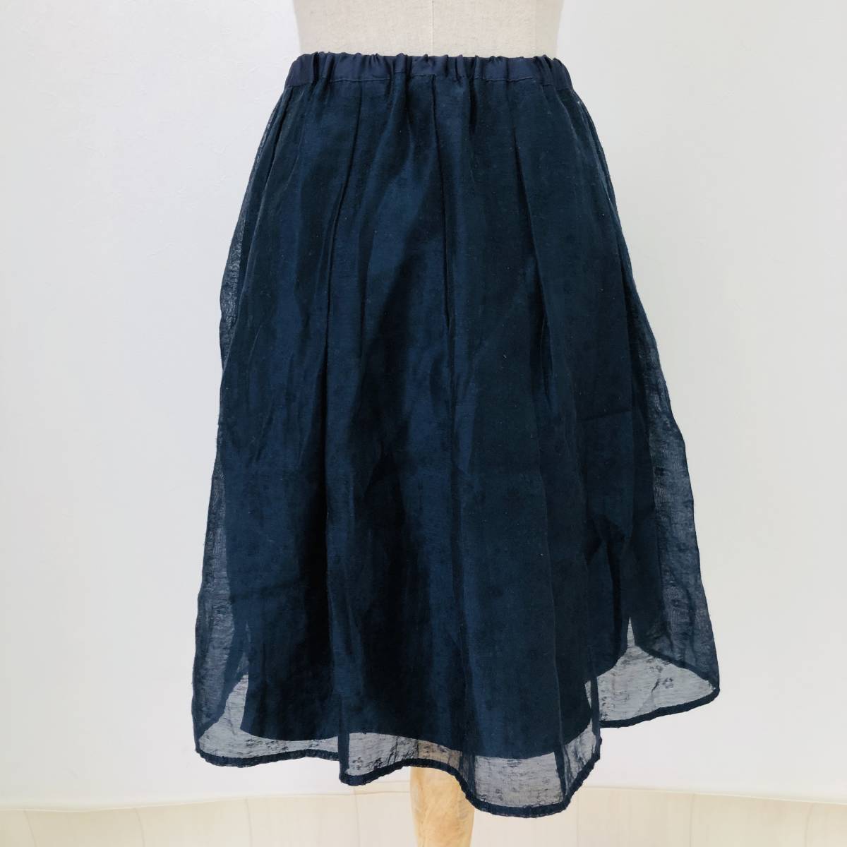 k0464 美品 Te chichi テチチ ミニ スカート 透け感 裏地 ウエストゴム S ネイビー レディース フェミニン エレガントガーリーチェック