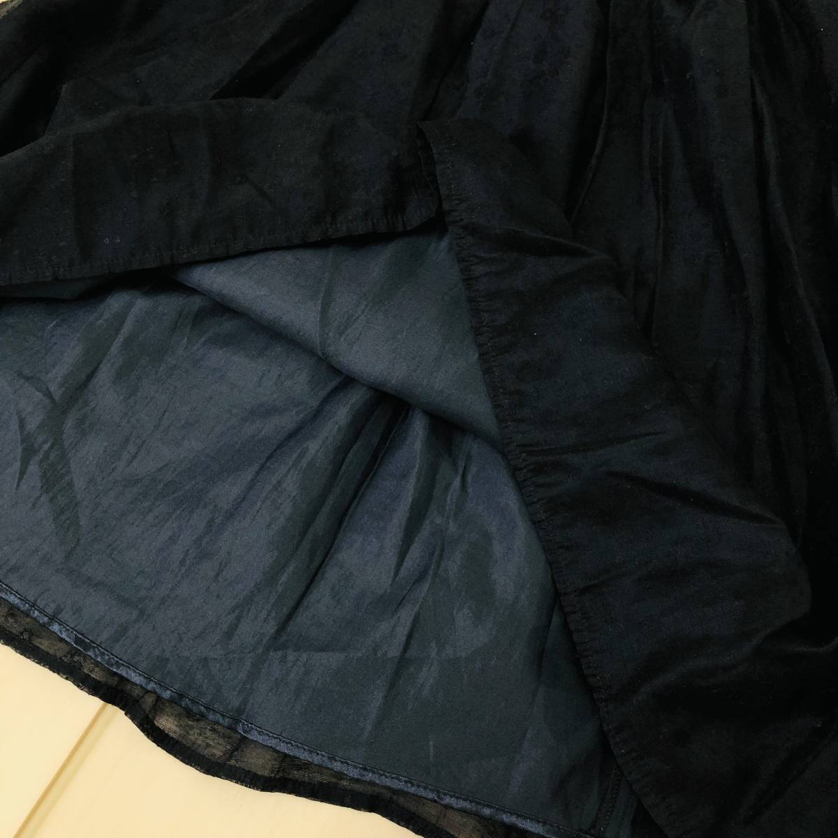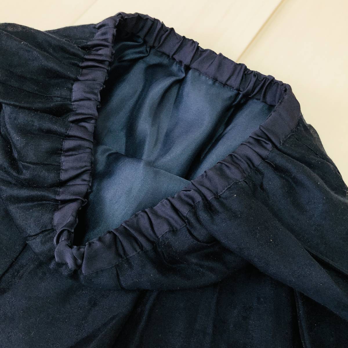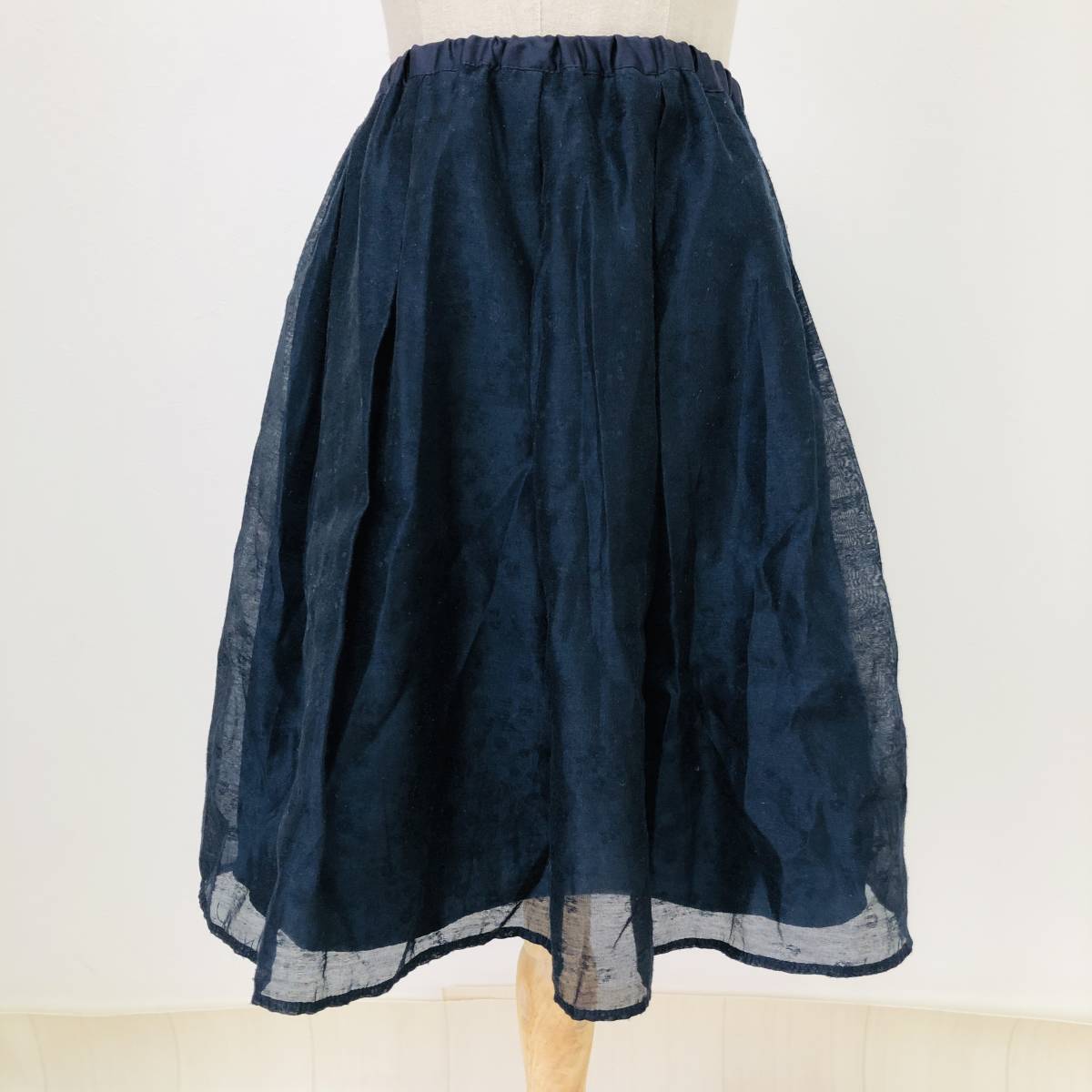 k0464 美品 Te chichi テチチ ミニ スカート 透け感 裏地 ウエストゴム S ネイビー レディース フェミニン エレガントガーリーチェック