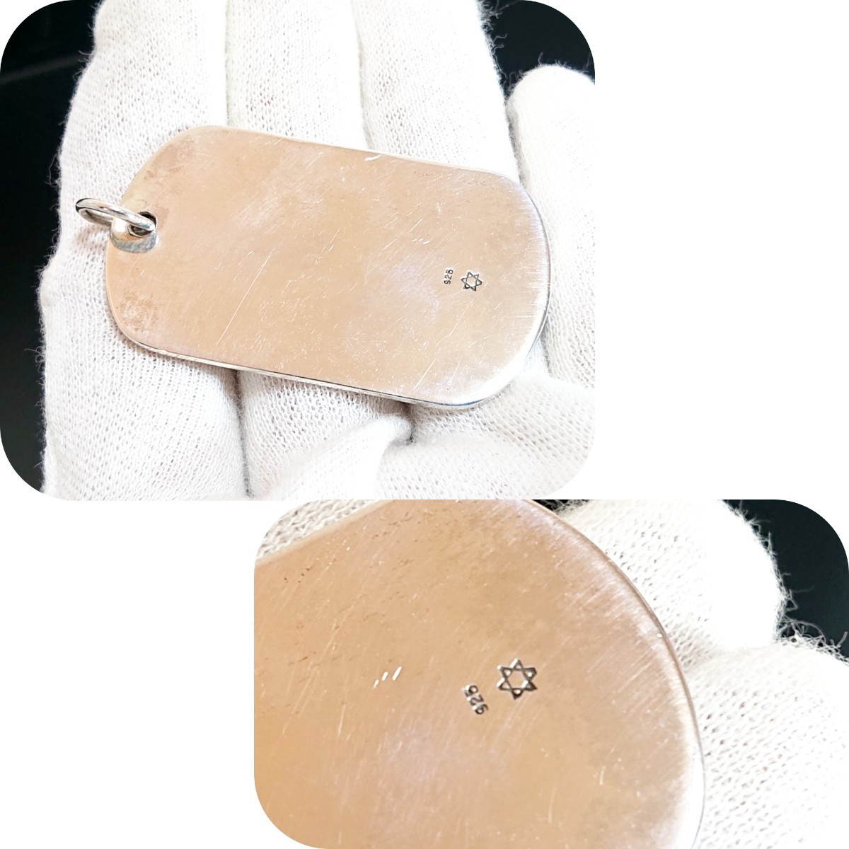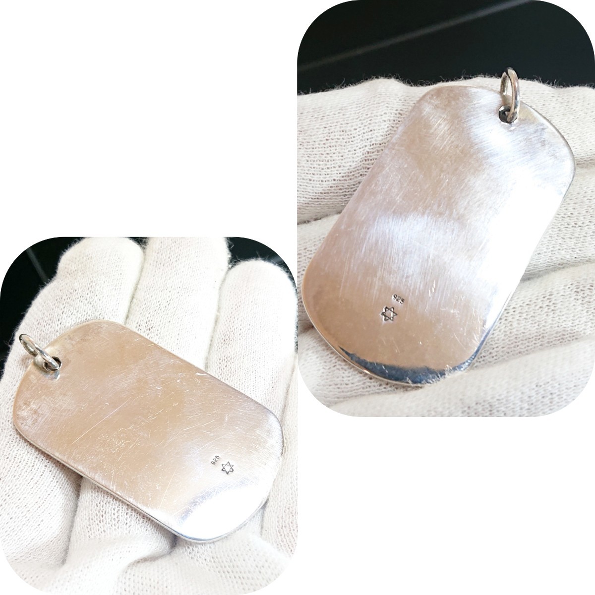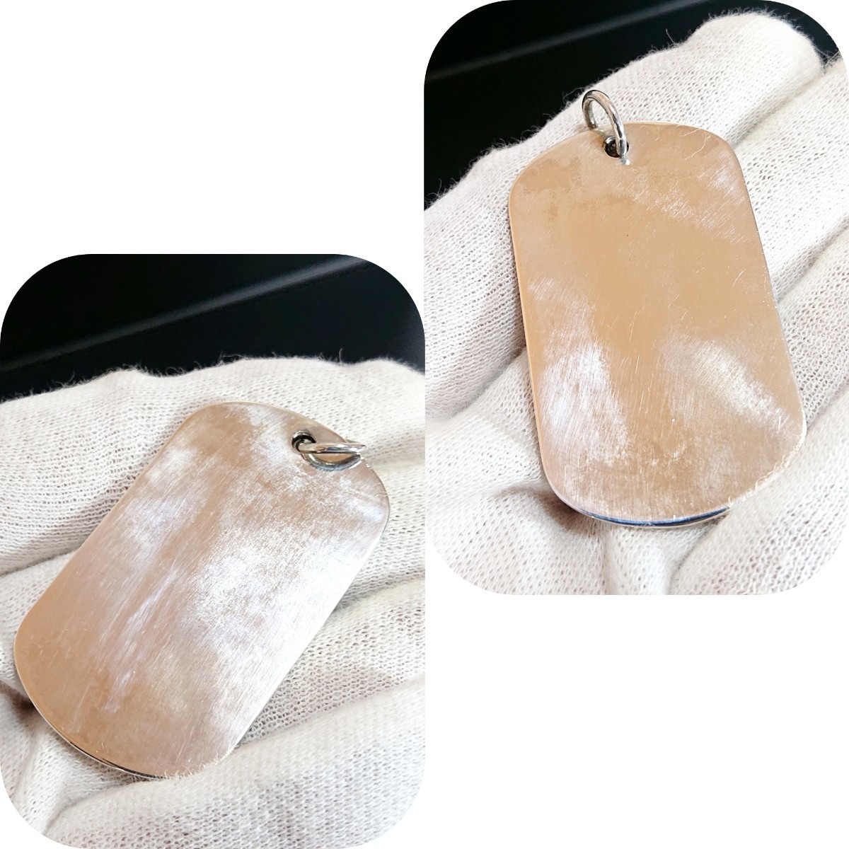 フリマなどに持ち歩いていた為、経年による銀独特の変色とタグの裏表に細かなキズがたくさんあります。