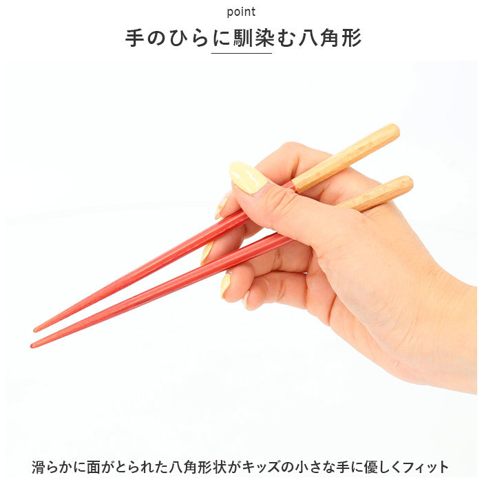 | 商品説明 | ・・豊かな彩りで、食卓がパッと華やぐ。お洒落で使いやすい「Haze -ヘイズ- 八角形のお箸」にキッズサイズ(18cmタイプ)が新登場。 ・【手のひらに馴染む八角形】 ・滑らかに面がとられた八角形状がキッズの小さな手に優しくフィット。テーブルに置いたときにもコロコロと転がらないのも便利なポイント。 ・【箸先すべり止め加工】 ・お箸の先には、おかずがしっかりつかめるすべり止め加工済み。お弁当箱のスミのごはん粒までしっかり食べられる! ・【温かみのある天然木製】 ・若狭塗の伝統工芸が息づく、福井県小浜市の職人さんが一本一本手作業で仕上げた、木の温もりが感じられる安心の日本製品。 ・【食洗器でお手入れ簡単】 ・食器洗い洗浄機で手軽に洗えるからお手入れが簡単!毎日の家事で忙しいママさんも笑顔に。 ・【ご家族でお揃いに】 ・お子さまの小さな手のひらでもしっかりと握れる、長さ18cmタイプ。大人用の23cmタイプと一緒に、パパママとお揃いにしても◎(※大人用八角形のお箸23cmタイプは、別商品ページでご購入いただけます。ストアの検索窓に商品コード[hazehashi]を入力し、検索してください。) ・【自分だけの一膳が見つかる】 ・雰囲気のあるニュアンスカラーと、ラフな塗りが醸し出すビンテージ感あふれる風合いも魅力のひとつ。お気に入りの一膳が見つかる、華やかなカラーバリエーション。 |