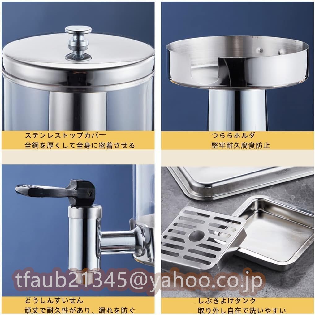 用途:お茶、レモネード、フレーバーウォーターなどのディスペンスに適したドリンクディスペンサー。 ドリンクステーションに置いて注ぐだけで、お客様に最高のドリンクを楽しんでいただけます。 高級ホテル、レストラン、バー、その他のエンターテイメントの場所に最適です。