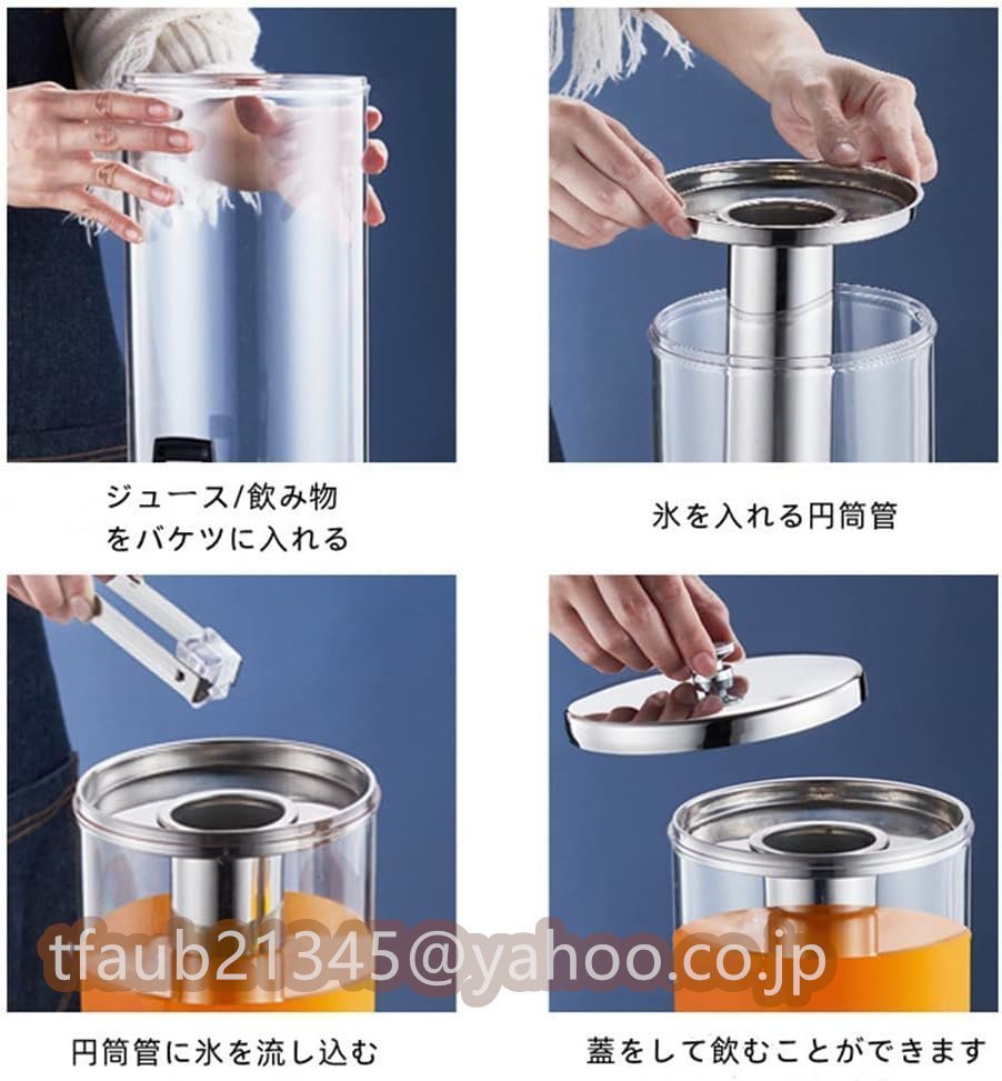 機会:ユーザーフレンドリーで、あらゆる機会に適しています。ジュースディスペンサーは、パーティー、レストラン、ホテル、ビュッフェ、カフェテリアなど、大勢の人にジュースを提供する必要がある場所で使用できます。